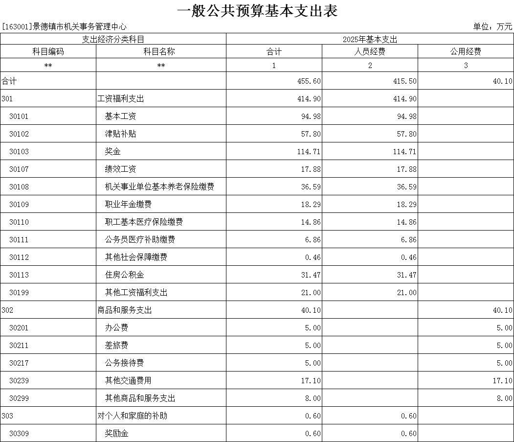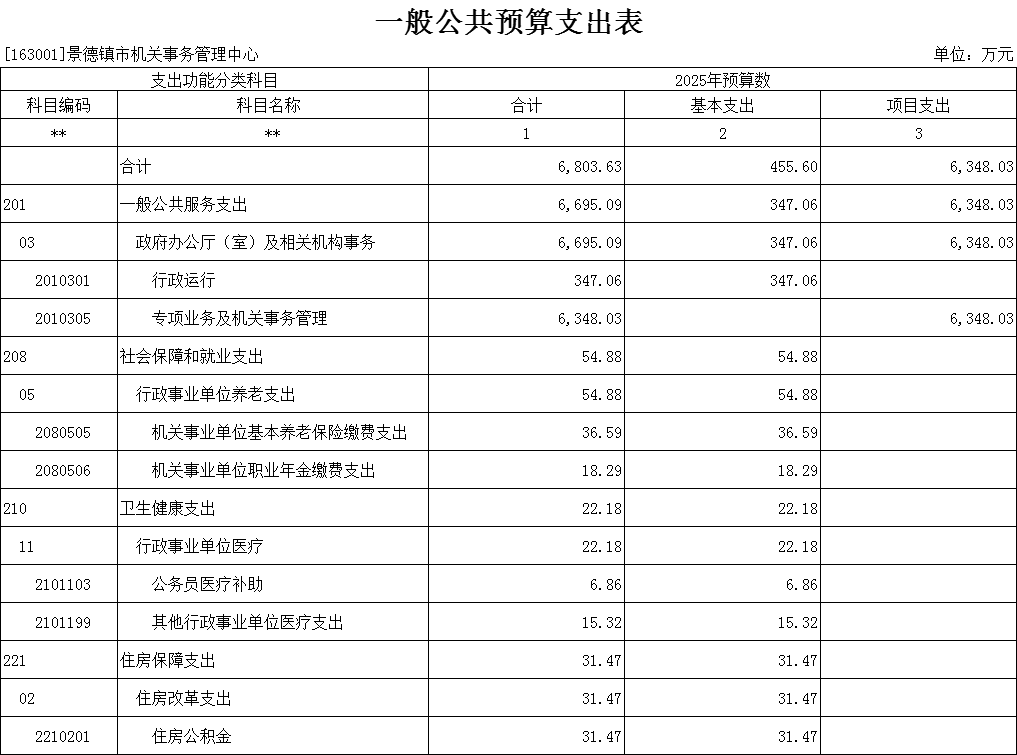 景德镇市机关事务管理中心2025年单位预算