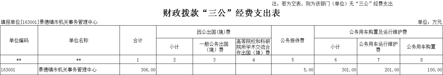 2025年景德镇市机关事务管理中心“三公”经费财政拨款安排306万元,其中:
