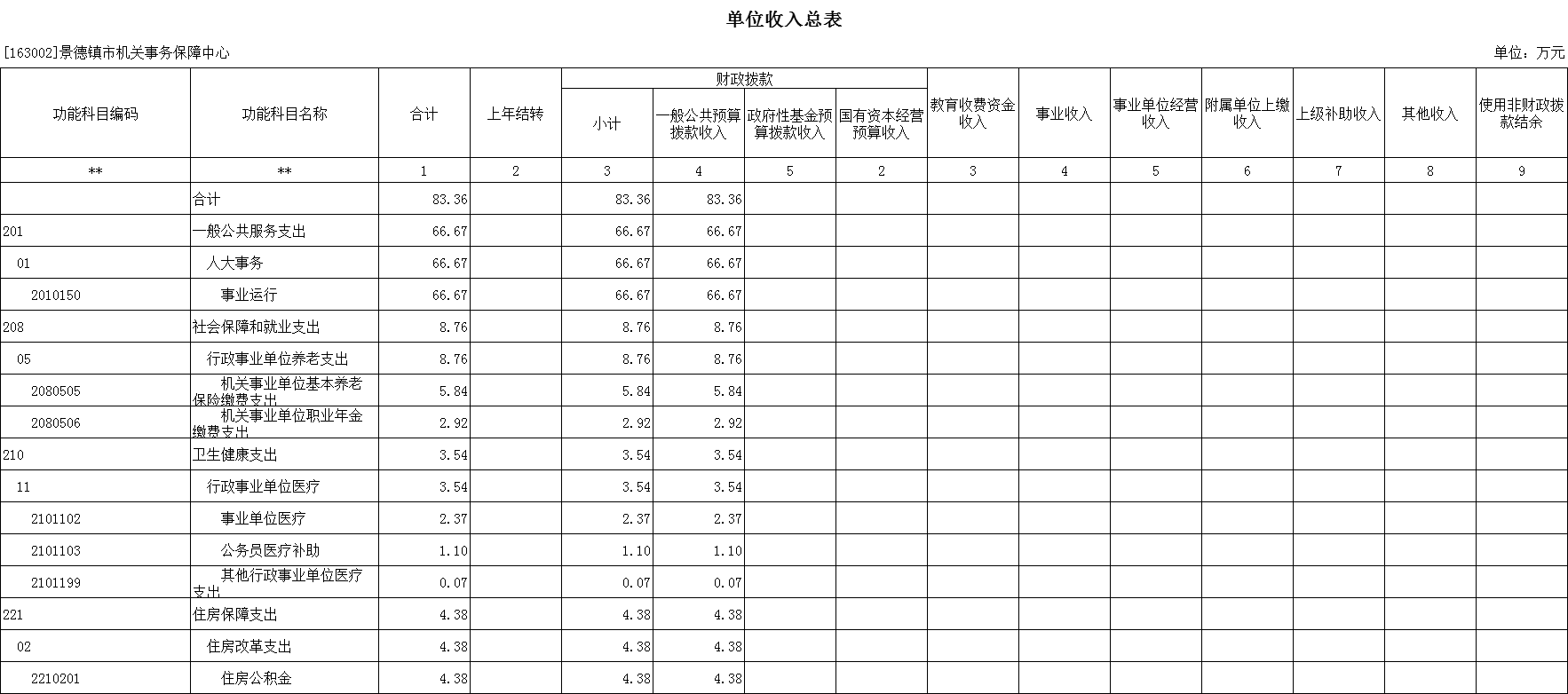 二、《单位收入总表》