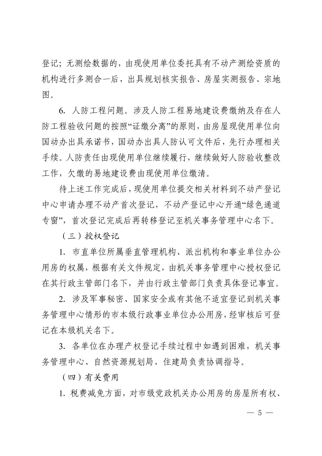 (行政性规范文件)景德镇市人民政府办公室关于印发《景德镇市市级党政机关办公用房权属统一登记工作方案》的通知