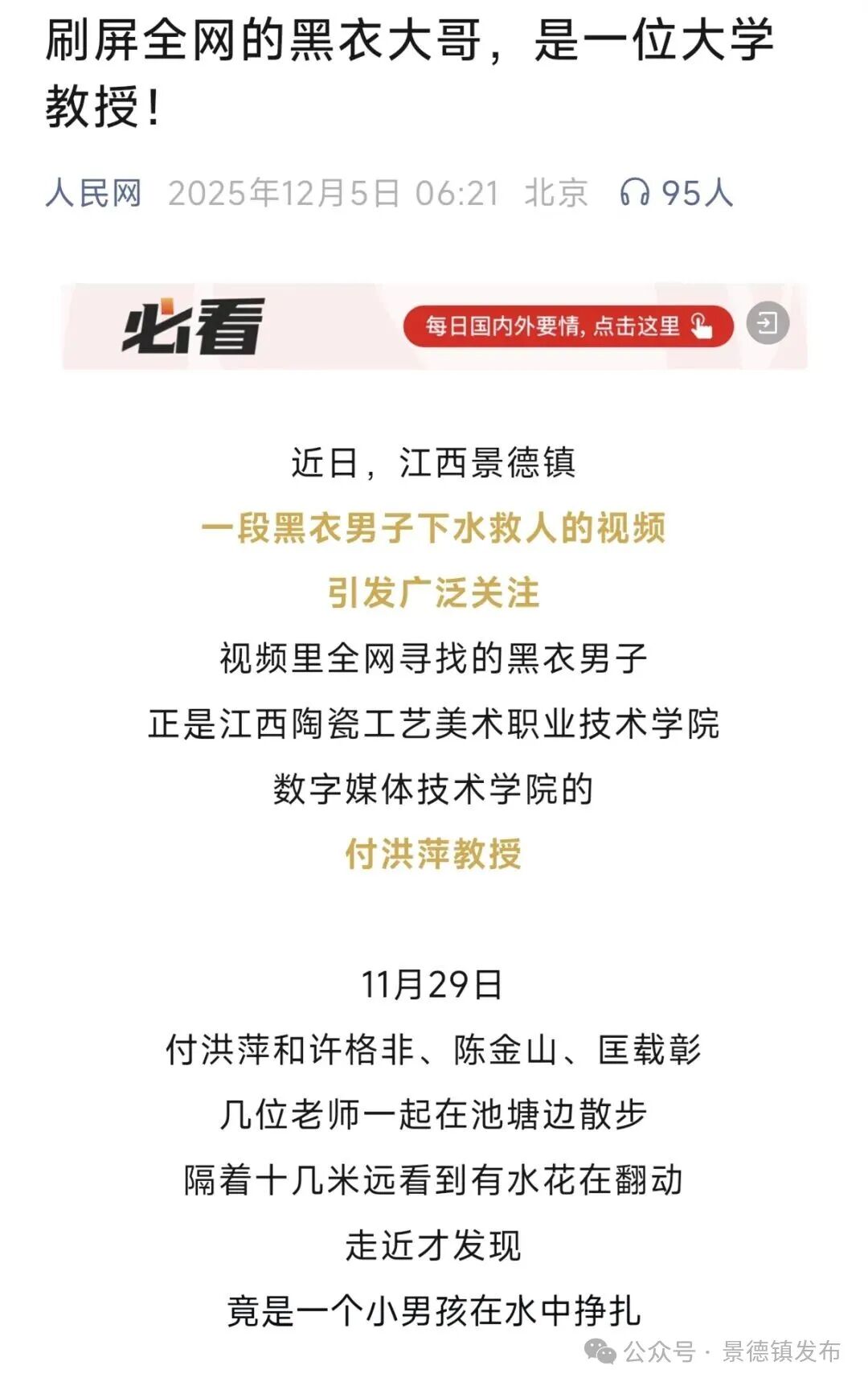 面对赞誉,付洪萍格外平静:“我们只是做了任何人都会做的事,真正关键的是团队配合,尤其是岸边三位同事的及时支援。”他表示,救人是出于本能,更是教师职业的责任使然,希望更多人能关注见义勇为的精神传承,而非聚焦于个人。