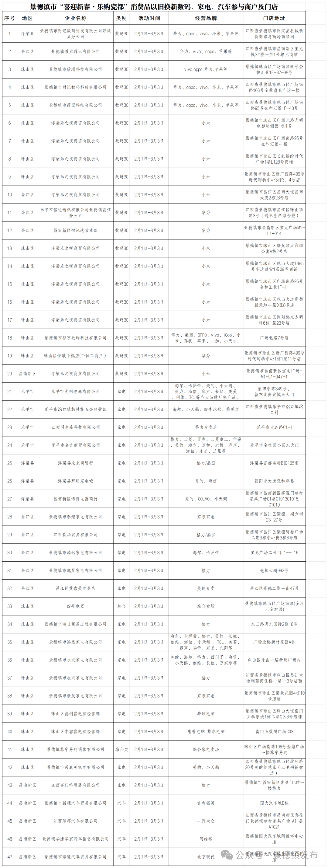 2月1日至3月3日,组织全市参与商户开展数码、家电、汽车等消费品以旧换新促销活动。参与商户严格执行国补政策,数码、家电确保产品价格低于2025年本地均价,切实让利于民,引导绿色低碳消费新风尚。