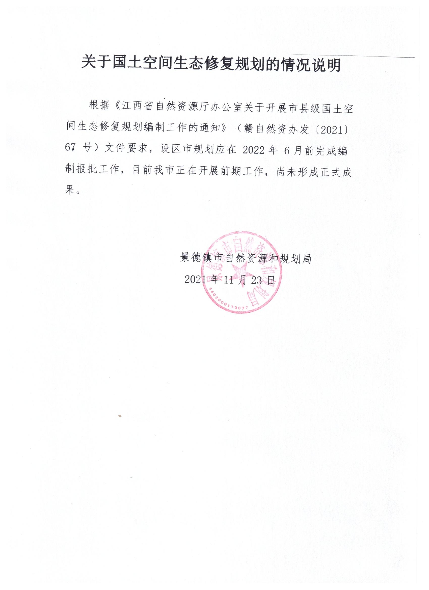 关于“国土空间生态修复'十四五'规划”的情况说明
