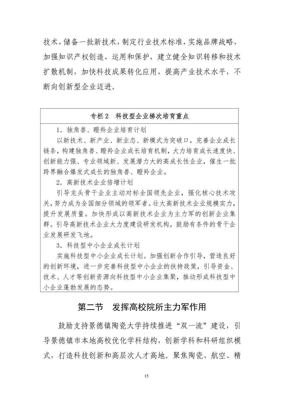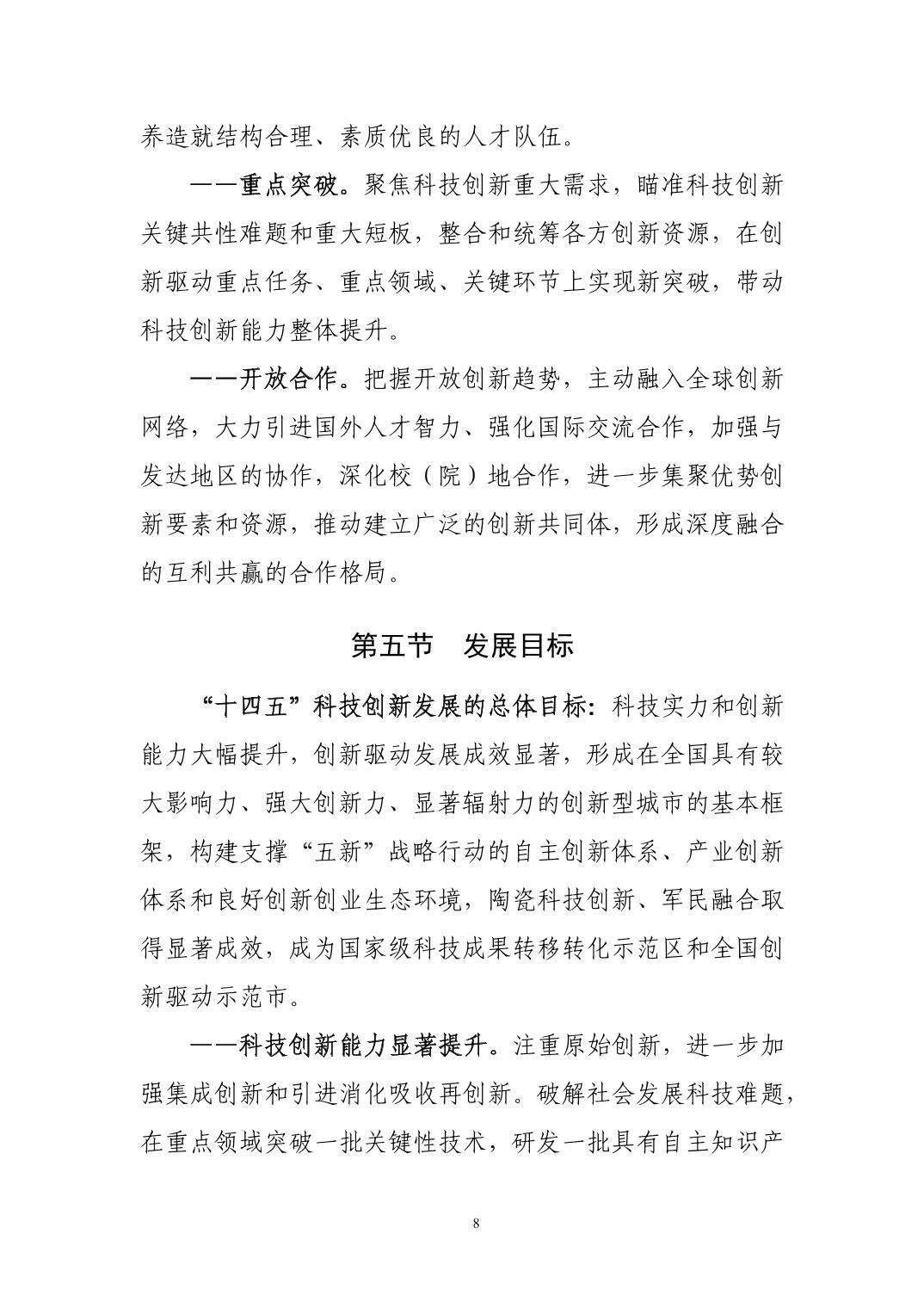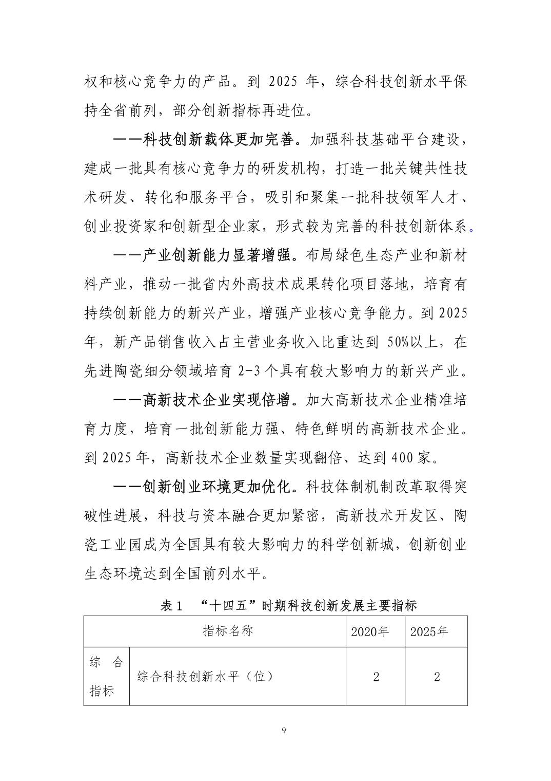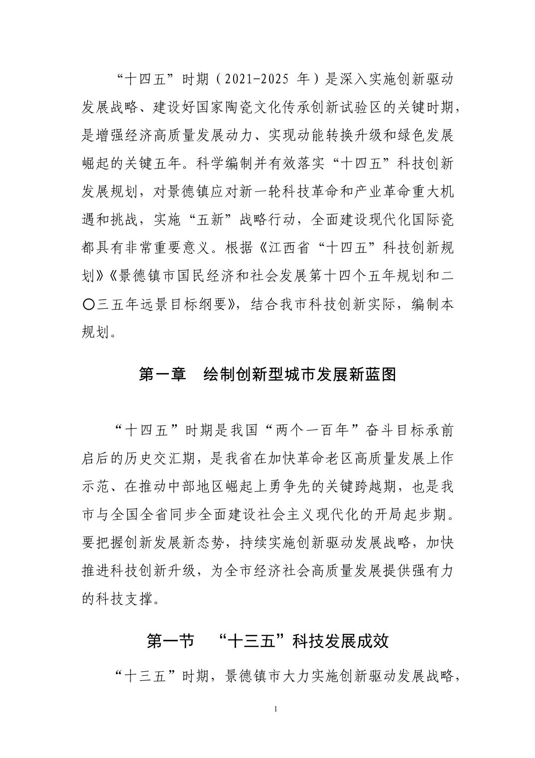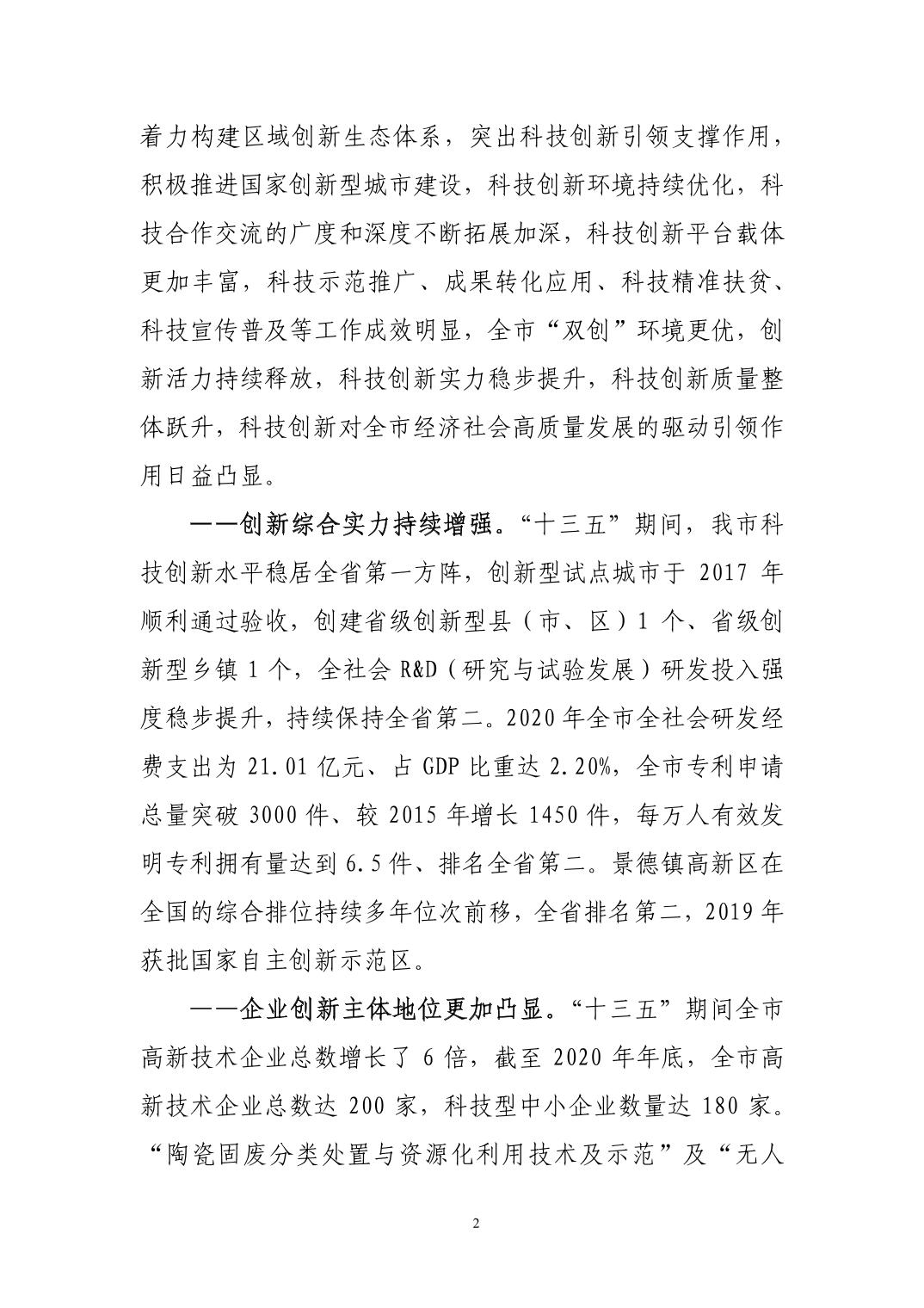 【本级】关于印发《景德镇市“十四五”科技创新发展规划》的通知