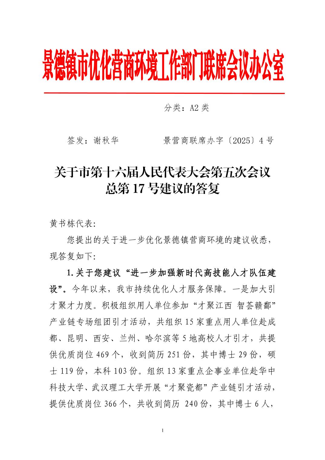 关于市第十六届人民代表大会第五次会议总第17号建议的答复