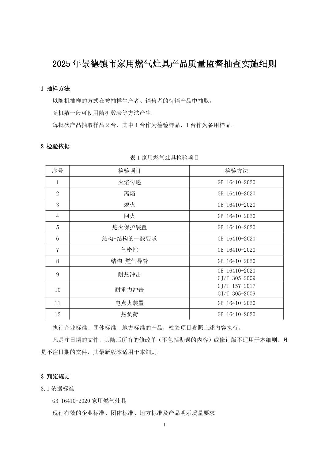 2025年景德镇市家用燃气灶具产品质量监督抽查实施细则