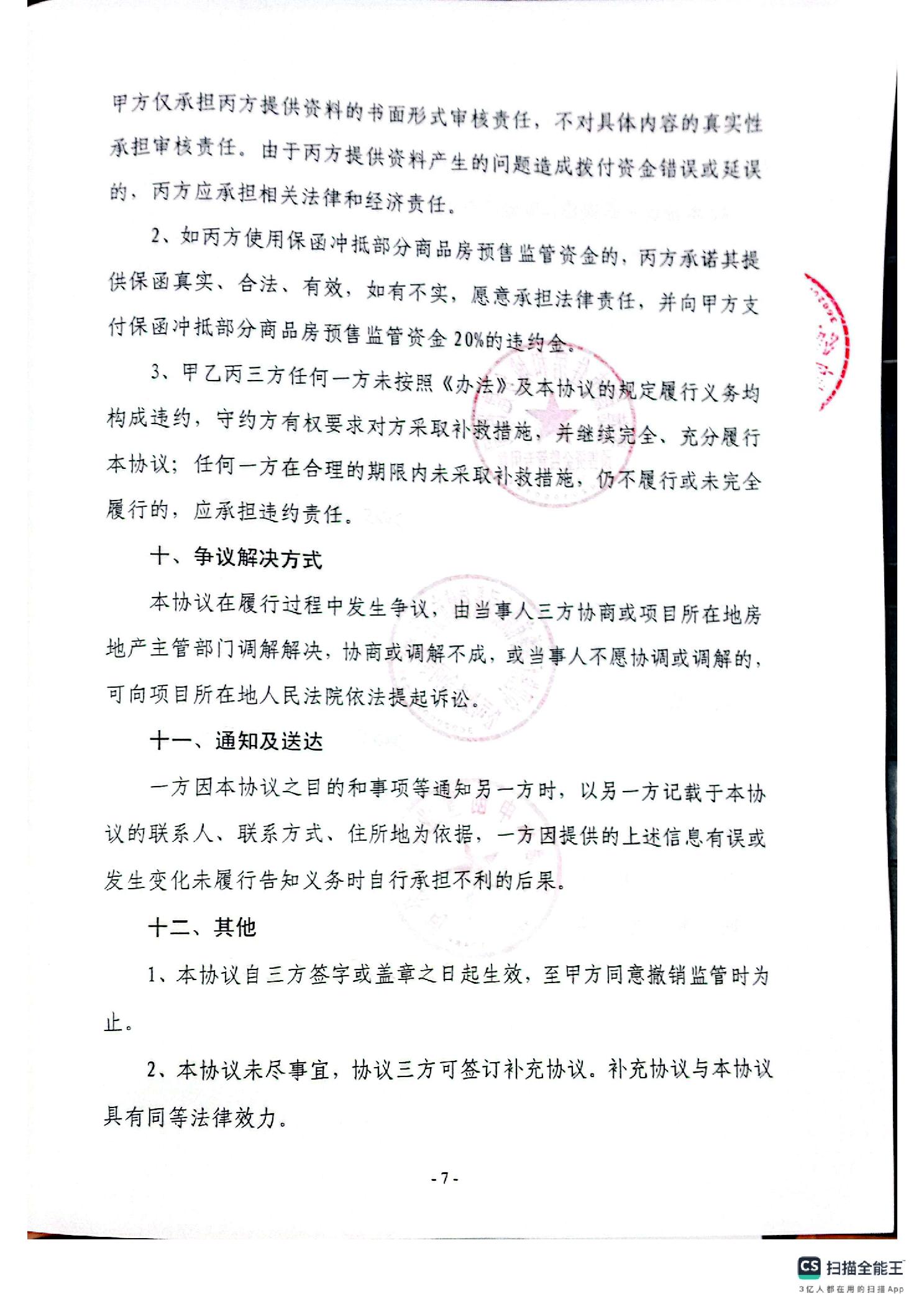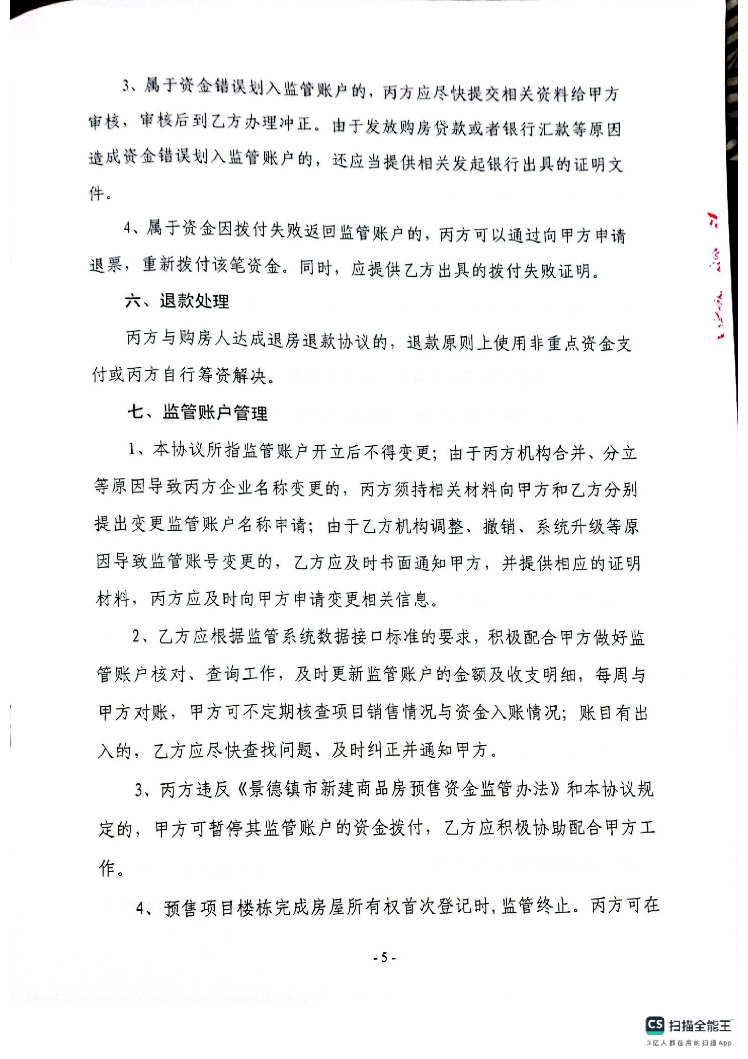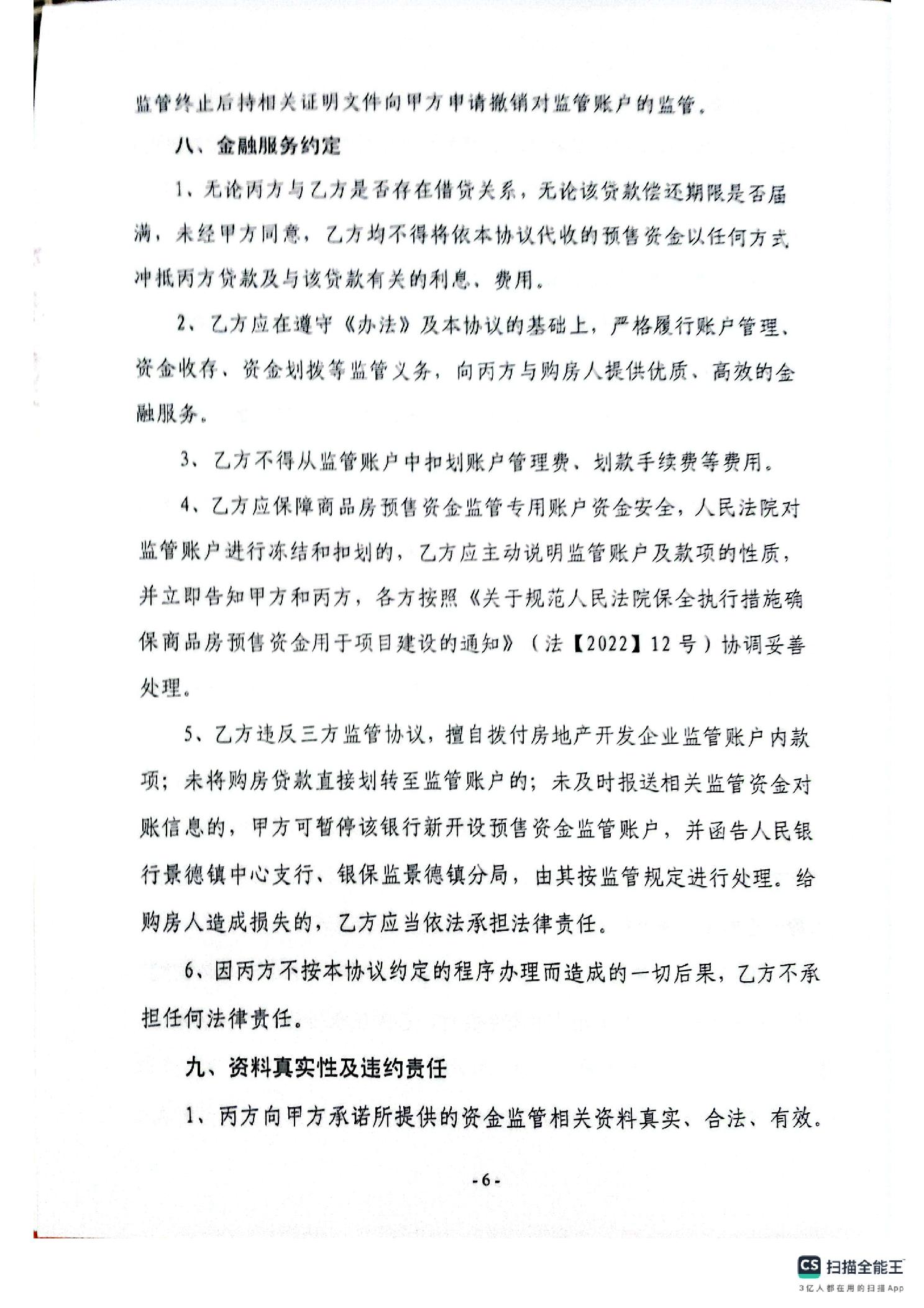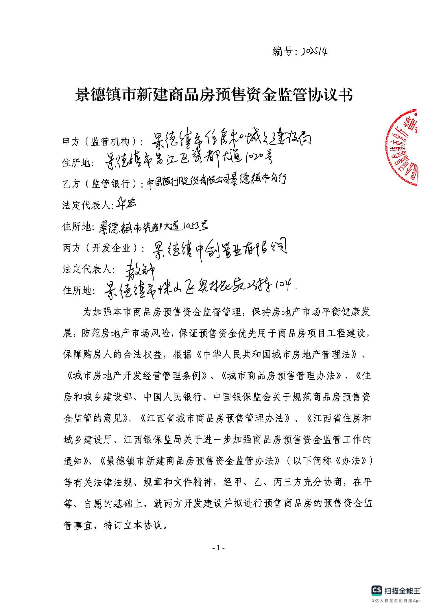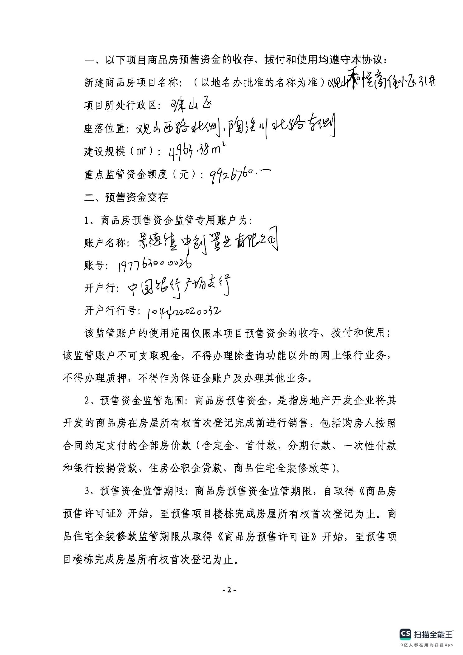 观山和悦商住小区31#楼+中国银行景德镇市分行广场支行新建商品房预售资金监管协议书