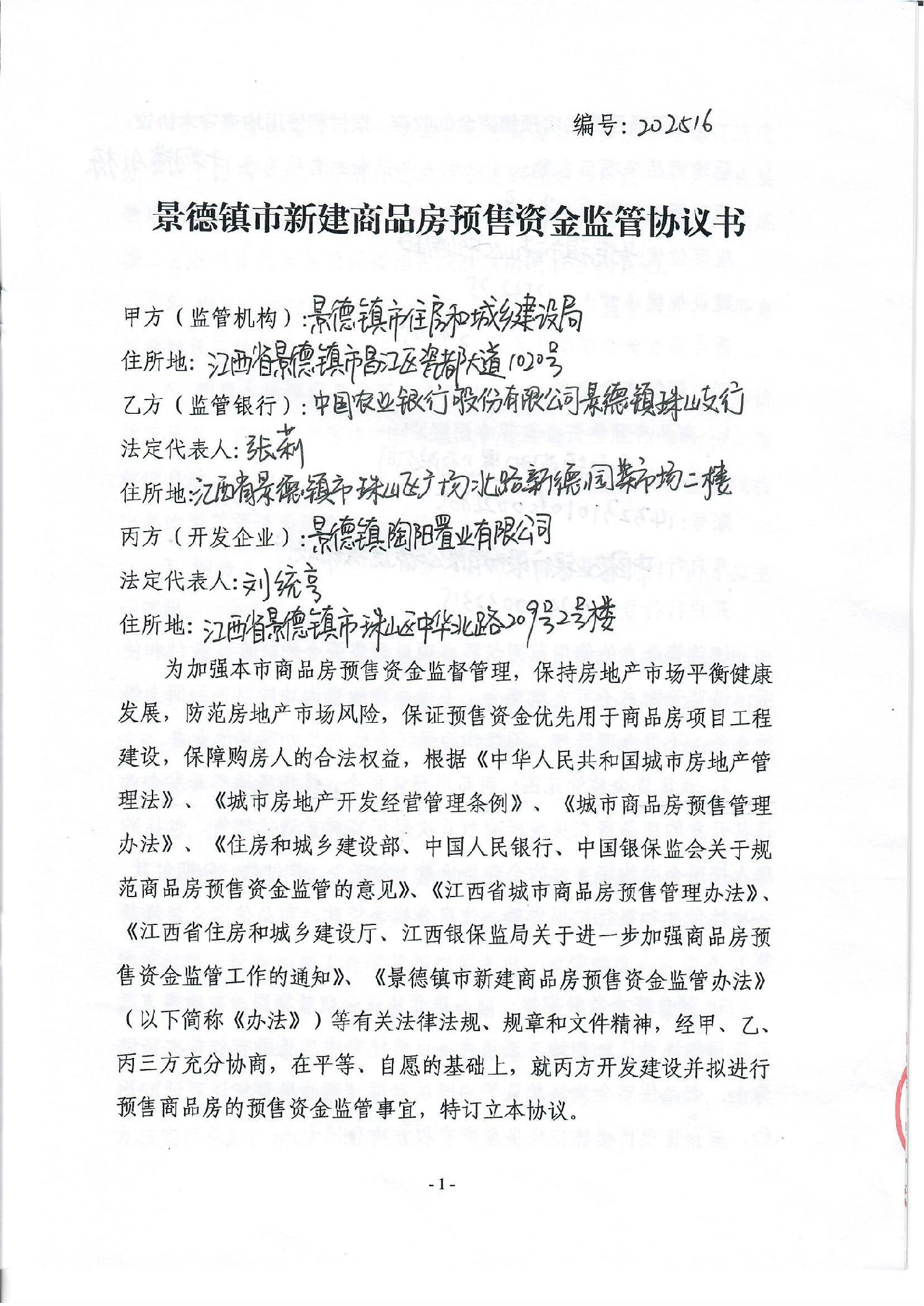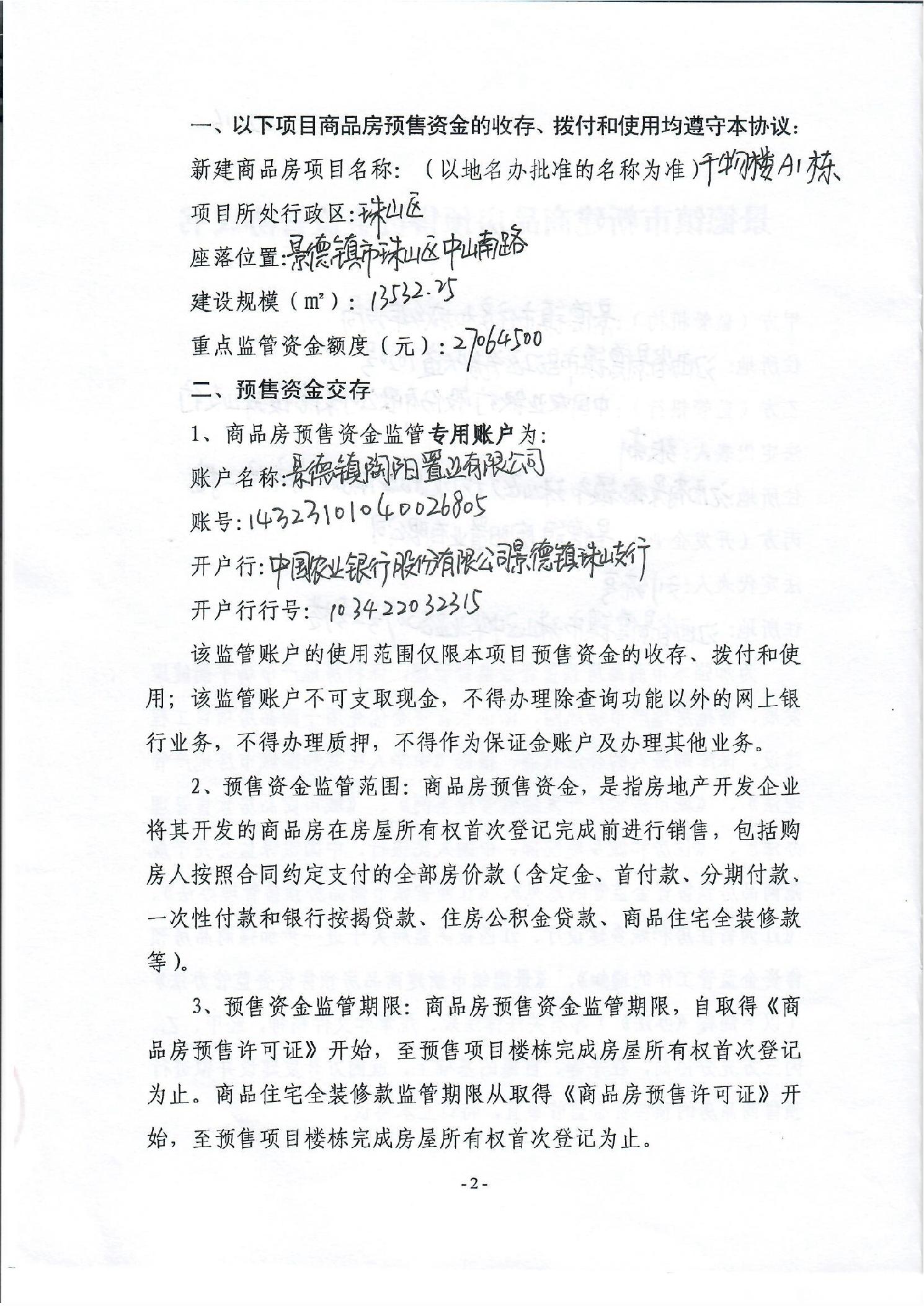 千物楼A1栋楼+中国农业银行景德镇珠山支行新建商品房预售资金监管协议书