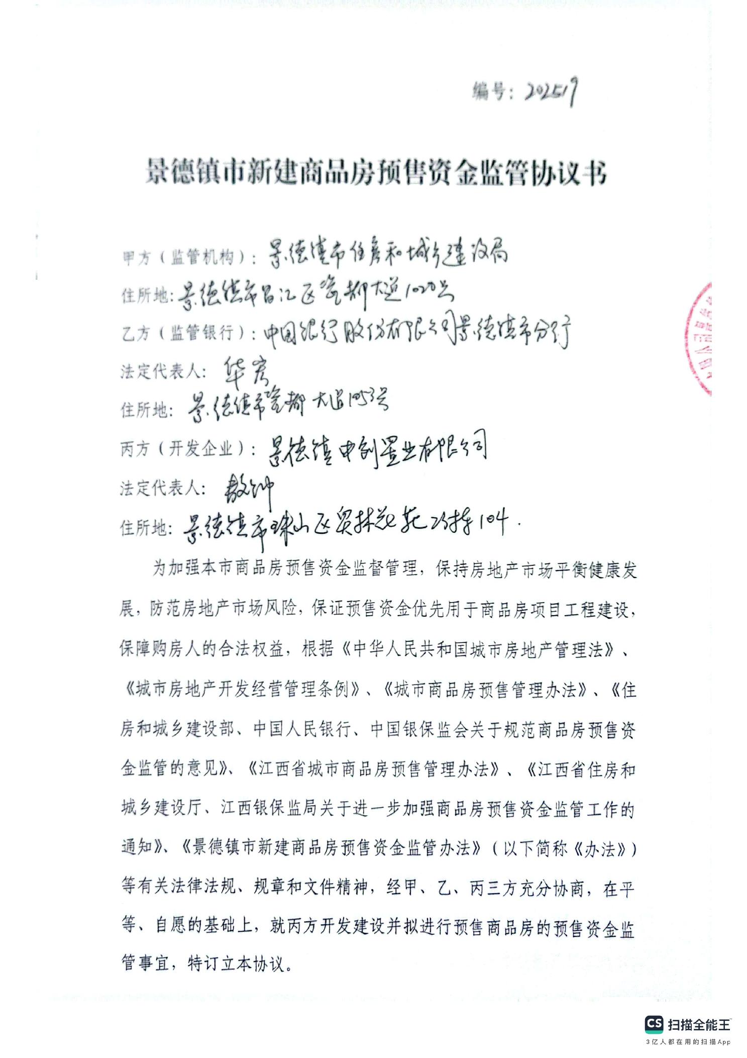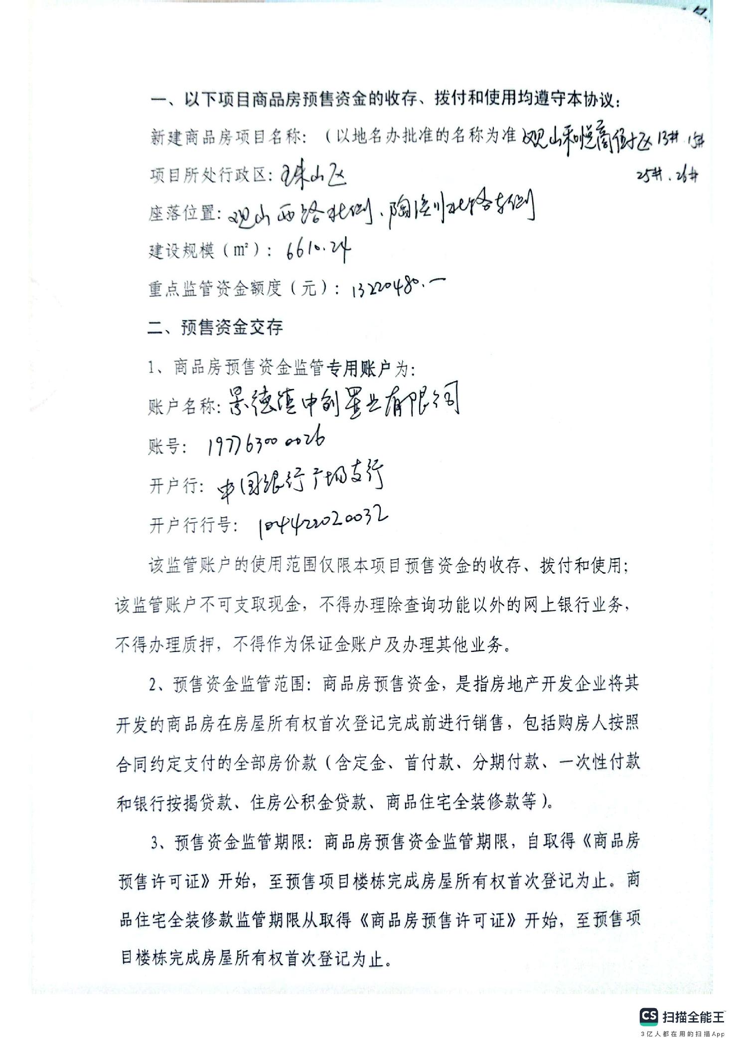 观山和悦商住小区13#.15#.25#.26#楼+中国银行景德镇市分行广场支行新建商品房预售资金监管协议书