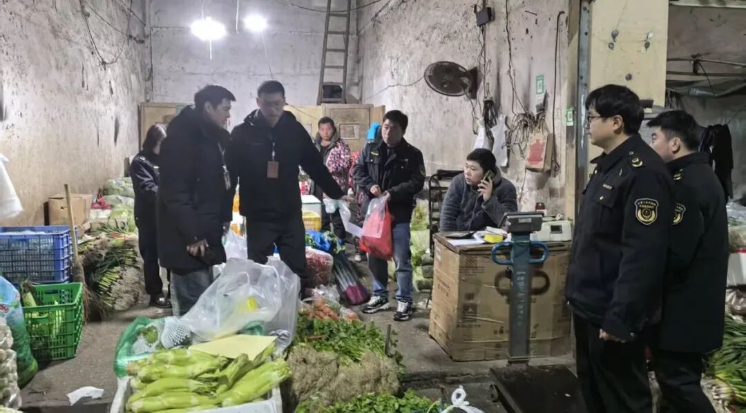 新春的脚步愈发临近,家家户户的餐桌渐渐丰盛起来,农产品消费也随之进入旺季。为切实守住全市人民节日期间的饮食安全底线,让大家吃得安心、吃得放心,景德镇市市场监管局于2月4日凌晨,联合市局执法稽查局、珠山区市场监管局及太白园分局,聚焦全市农产品供应“主枢纽”——曙光路农产品批发市场,开展节前食品安全全覆盖专项突击抽检行动。
