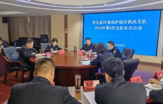 4月23日,市生态环境保护综合执法支队召开支队长办公会,研究部署开展执法领域群众身边不正之风和腐败问题集中整治工作等,支队长汪文勇主持会议。