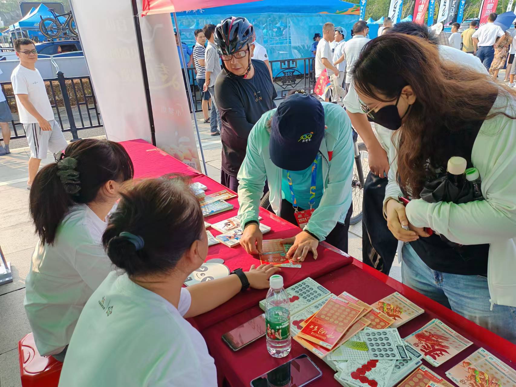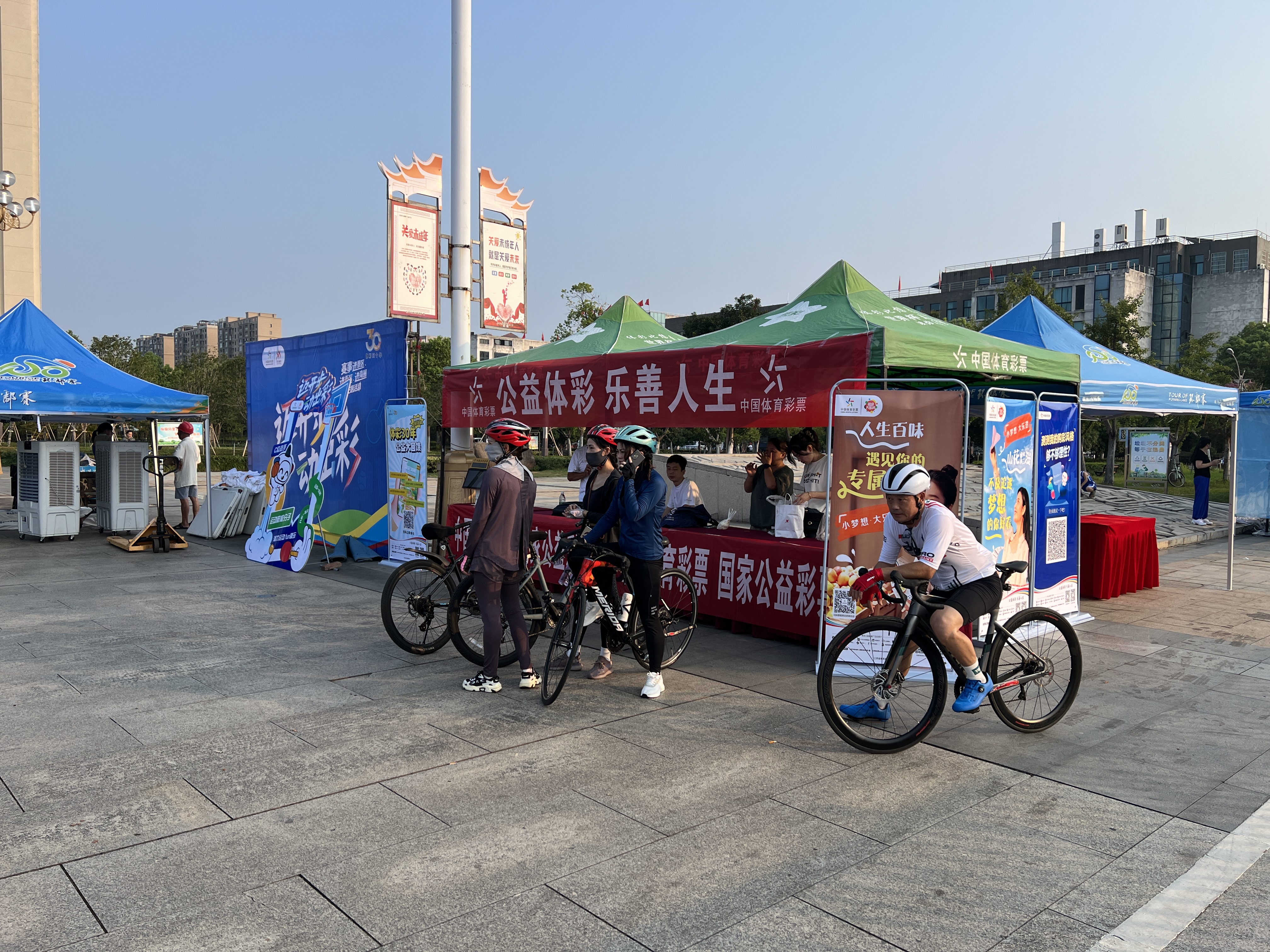 2024“中国体育彩票杯”第十二届环鄱阳湖国际自行车大赛于9月3日,在秀美的古戏台之乡——乐平盛大开幕,江西体彩积极融合环鄱赛开展现场地推活动,吸引了广大参赛选手和观众的关注。