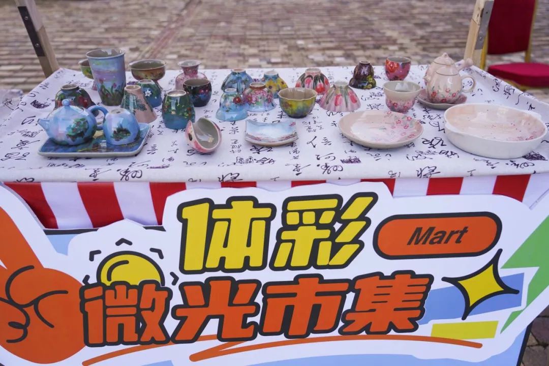 “市集也是展示陶瓷文化的窗口,我把在学校研学、制作的陶瓷作品带来了这次市集摆摊”,景德镇陶瓷大学的王文亮同学受本次活动招募,在微光市集里摆起了特色摊位、展售创意手作,他也向感兴趣的游客介绍着景德镇陶瓷文化,“感谢江西体彩给我这次参与微光市集摆摊的机会,我今天收入的一部分也会用来支持公益事业。”