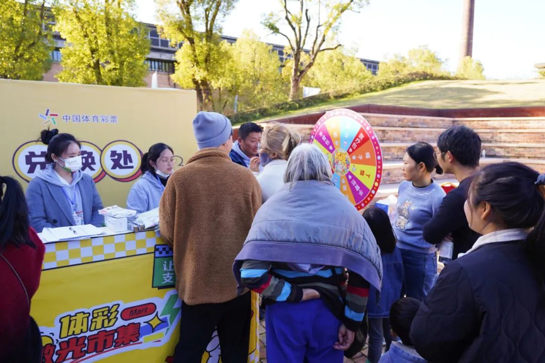 活动现场设置了好彩圈圈乐、“足”你精彩PK赛、好彩幸运池、体彩公益知识问答、许愿打卡墙等多个互动区域,市民朋友们手持“努力创造美好”集章卡,在市集内游玩互动、打卡集章。