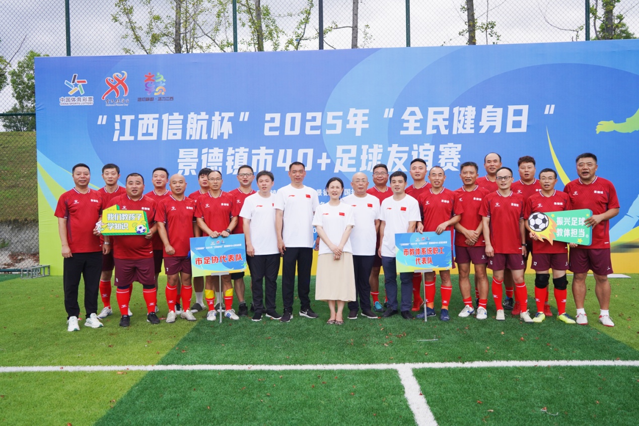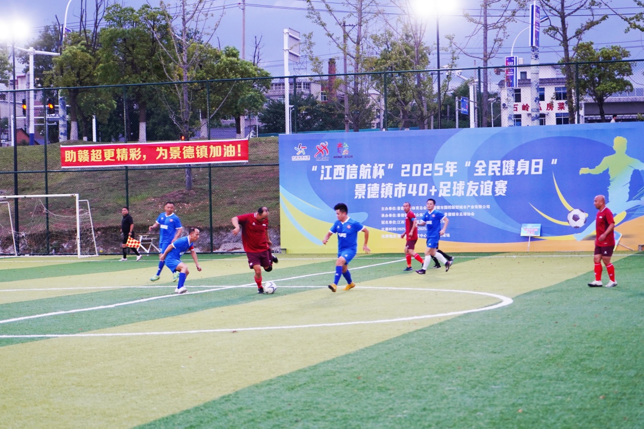 8月6日晚,“江西信航杯”2025年“全民健身日”景德镇市40+足球友谊赛在景德镇市体育中心八人制足球场正式拉开帷幕。本次赛事由景德镇市体育总会、景德镇市国控新型城市产业有限公司主办,景德镇市群众体育事务中心、景德镇市足球协会承办,江西省信航航空科技有限公司冠名支持,旨在庆祝我国第17个“全民健身日”,推动干部职工走出办公室、参与全民健身,助力“赣超”赛事氛围升温,为景德镇足球加油助威。