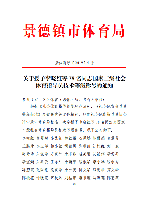 关于授予李晓红等78名同志国家二级社会体育指导员技术等级称号的通知