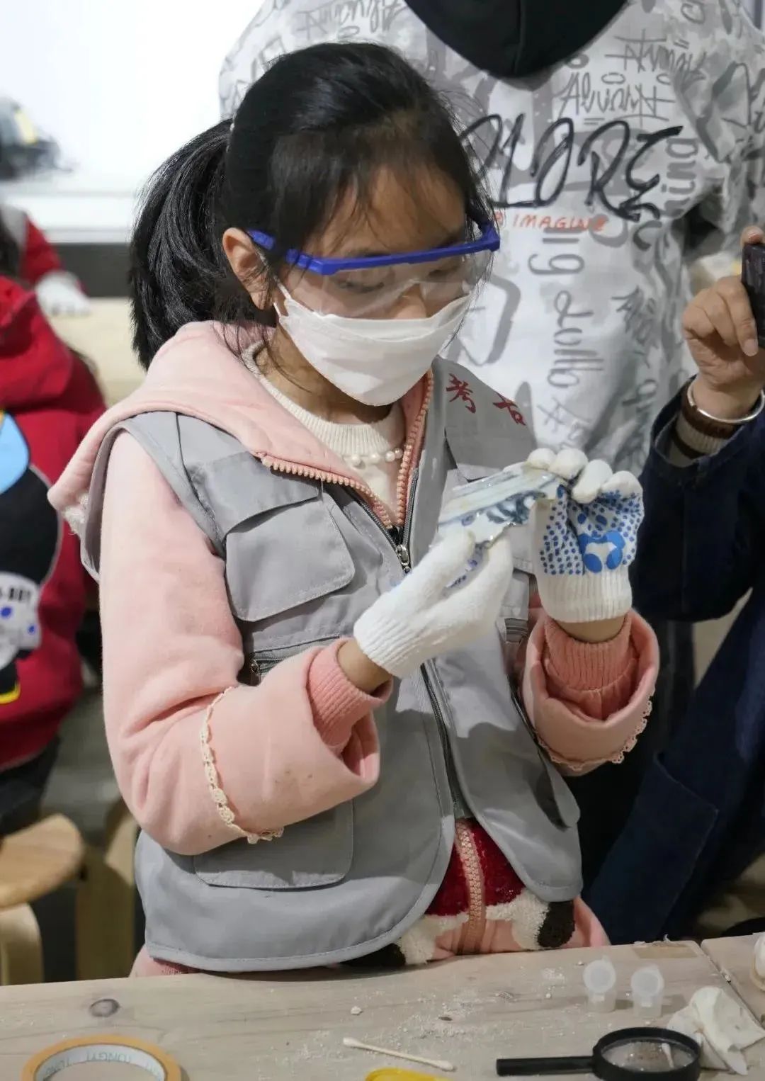 2022年4月18日,“小手拉大手 为申遗加油”瓷都小小考古家研学活动中,“小小考古家”修复瓷片。