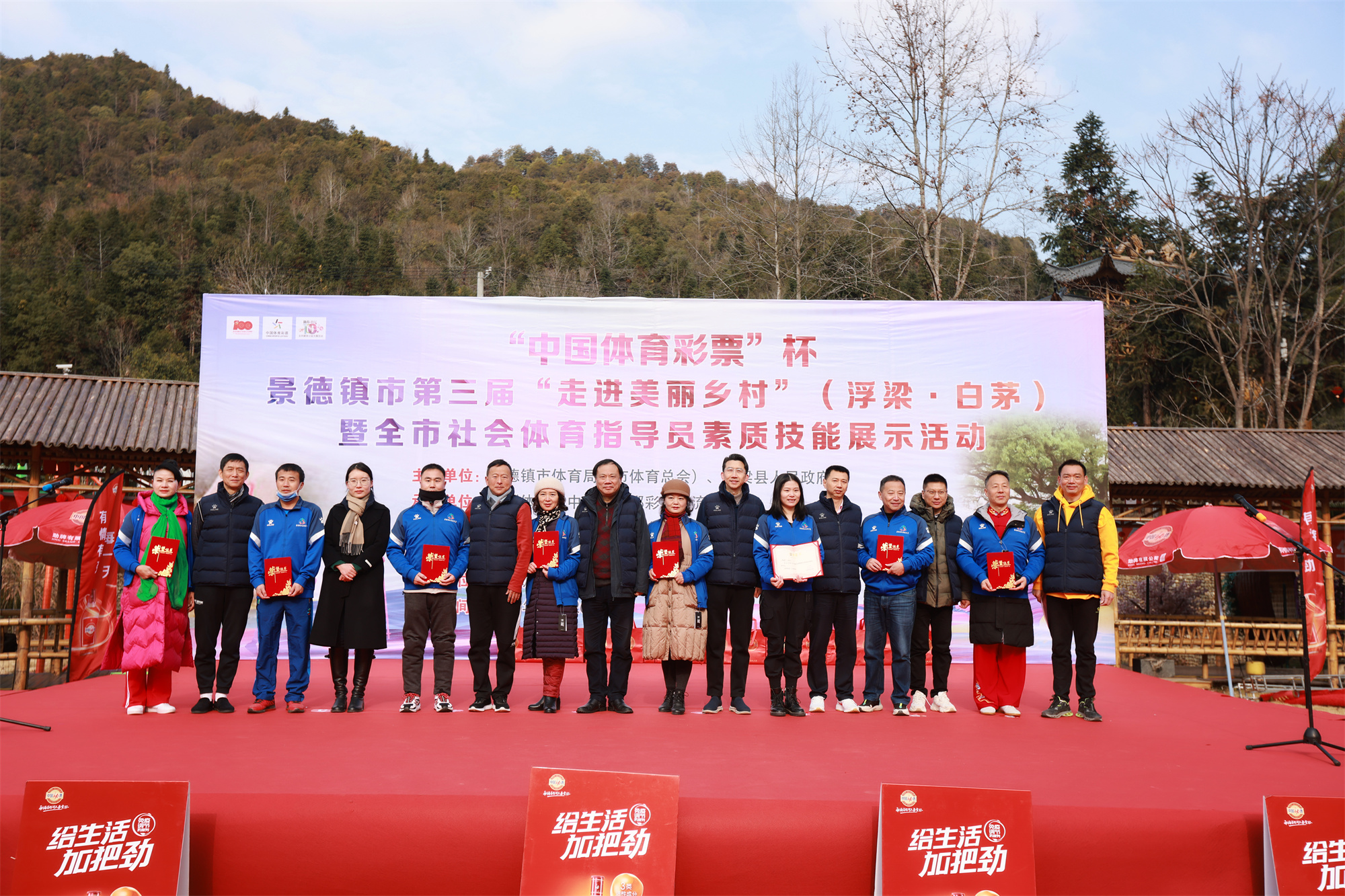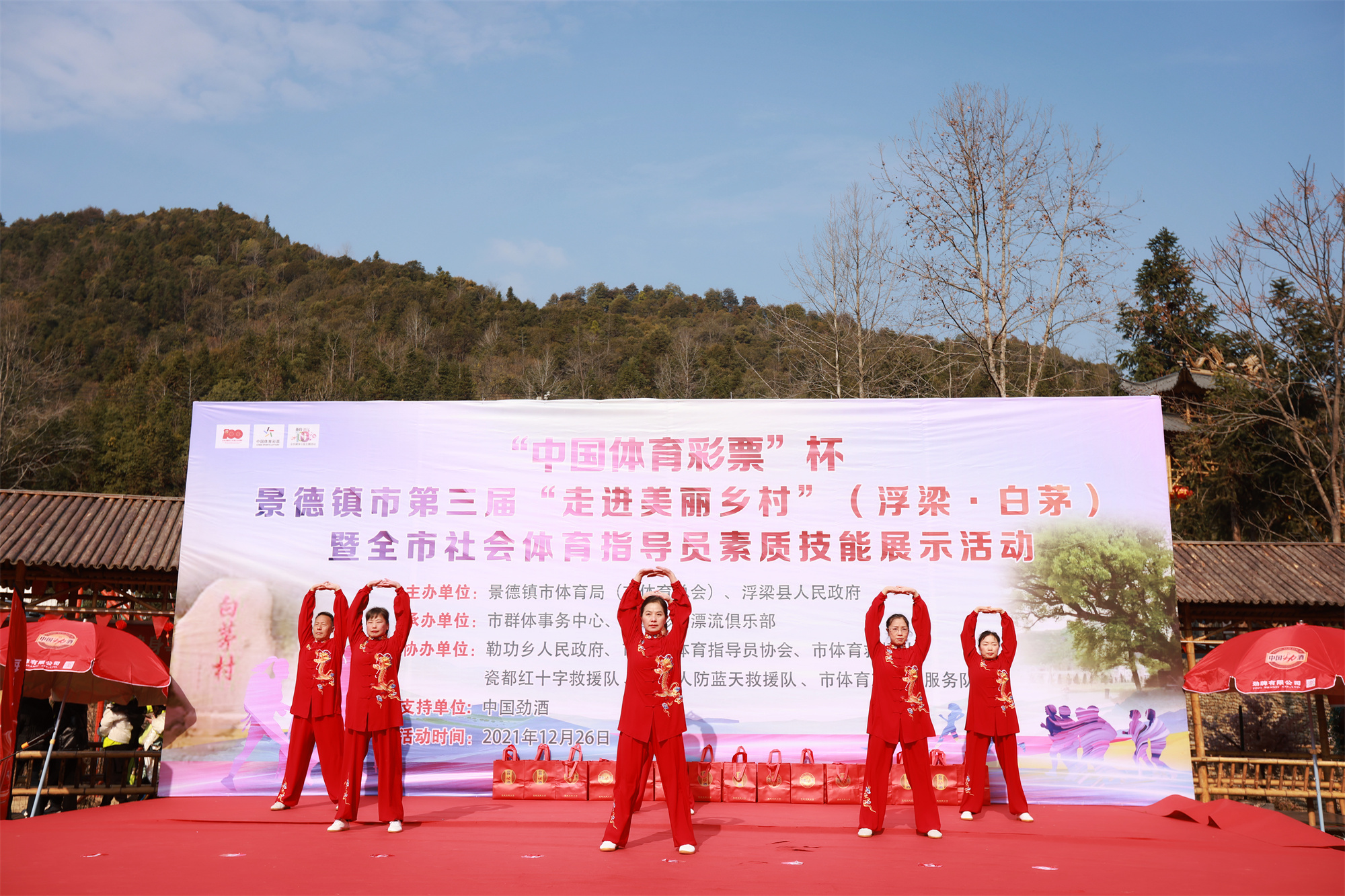 12月26日,“中国体育彩票杯”景德镇市第三届“走进美丽乡村”(浮梁·白茅)暨全市社会体育指导员素质技能展示活动在美丽的浮梁县白茅村举行。全市市直机关单位、各体育协会俱乐部的体育爱好者以及全市社会体育指导员代表,体育志愿服务、体育救援等600余人参加。市委政法委常务副书记王毅宣布开幕,市体育局党组书记何明旺、副局长孙俊,浮梁县教体局、浮梁县勒功乡等相关负责人出席开幕式。