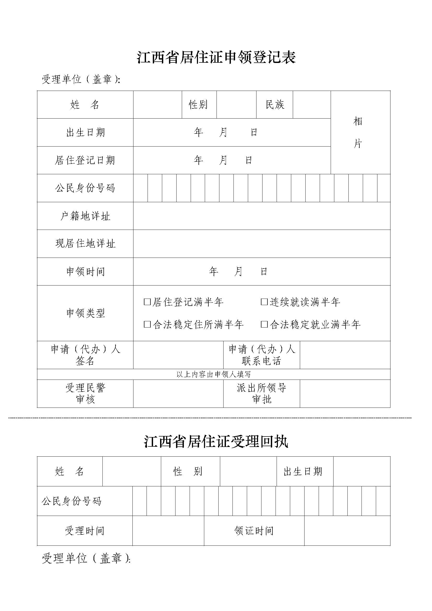 江西省居住登记凭证 | |||||||||||||||||||||||||