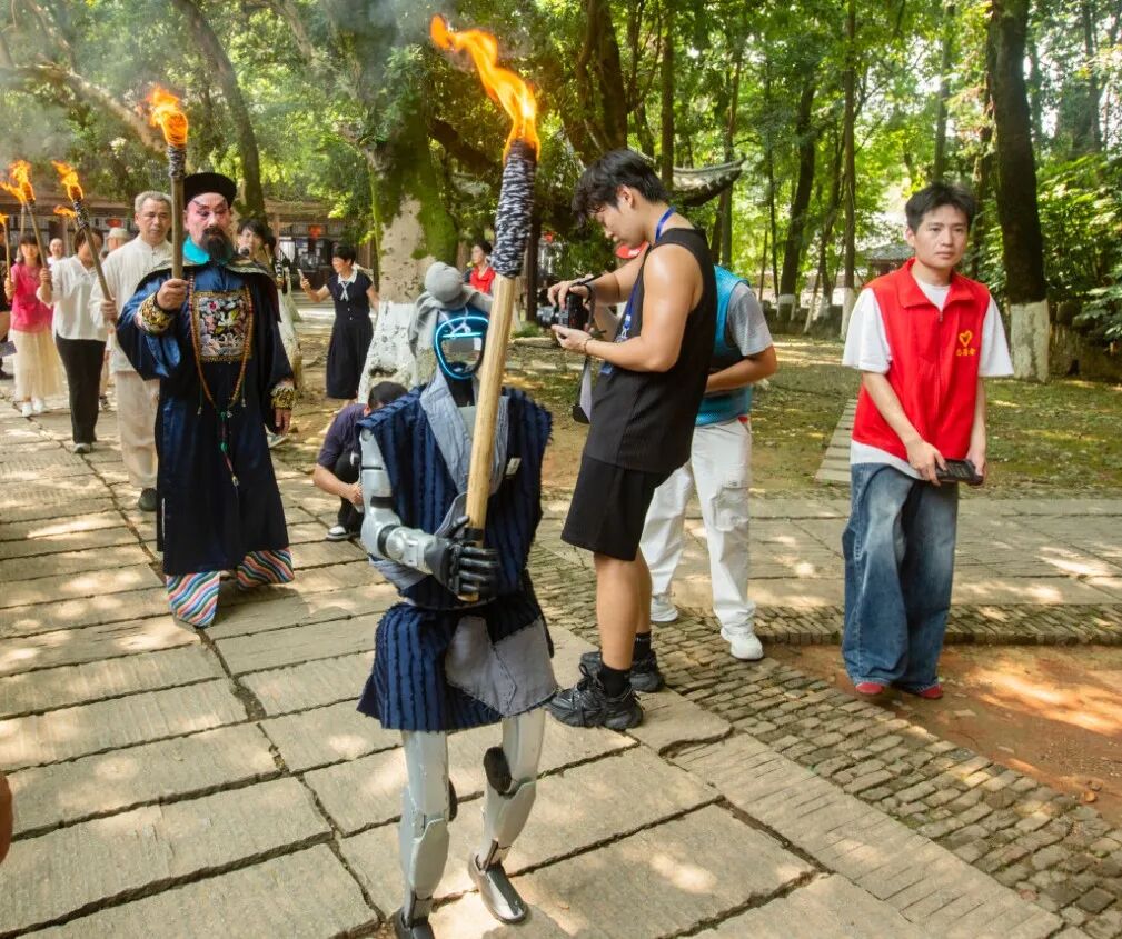 来自杭州的嘉宾李洁及宇树科技机器人说:“这一次我们带着机器人‘窑窑’来到古窑景区的开窑现场,也是希望通过当下最热火的机器人来助力传统文化,以后也是希望科技与传统文化的融合,让传统文化走向更多人的心里。”
