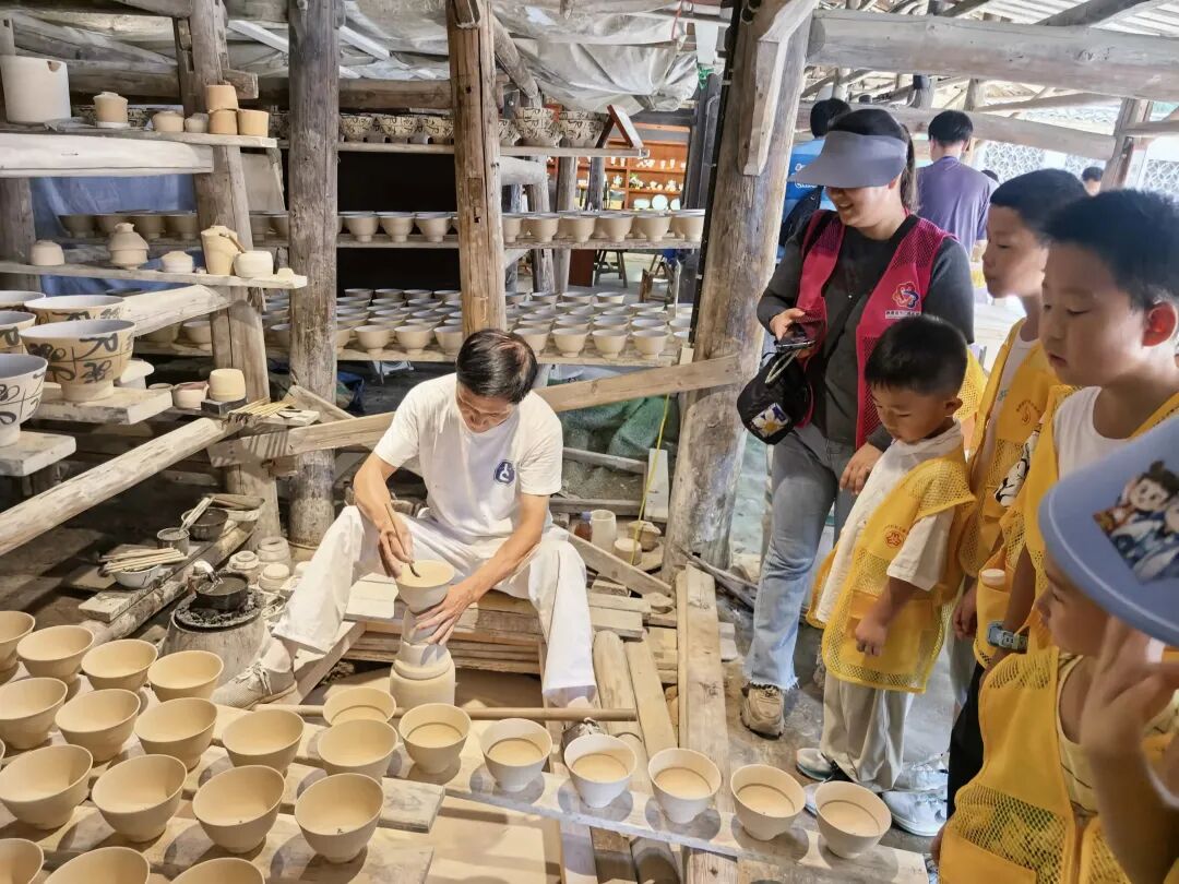 今天活动现场最动人的,莫过于市妇联儿童活动中心组织的 "新学年・观窑火" 活动。小朋友们不仅欣赏了机器人表演、参观明清御窑风火窑复烧点火活动,还近距离观看古窑非遗传承人展示传统手工制瓷技艺。