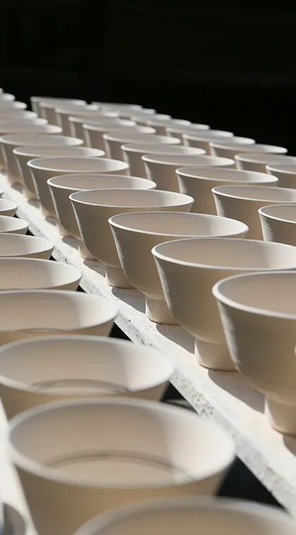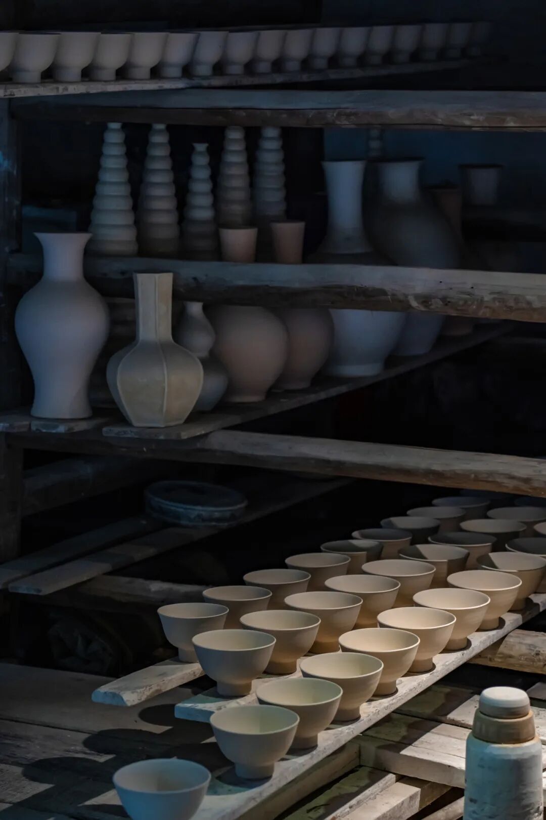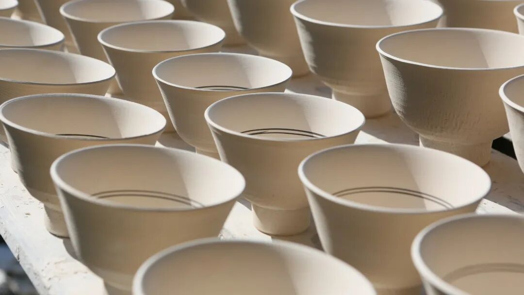 刚从拉坯师傅手里出来的泥坯