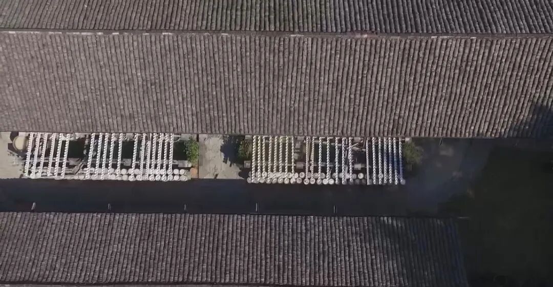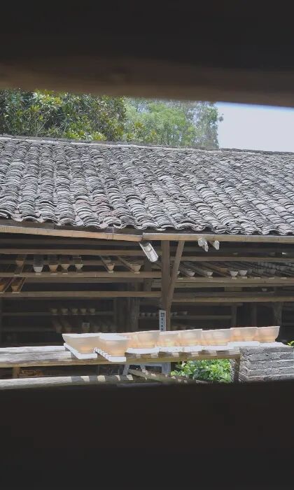 整齐摆放泥坯的晒架塘