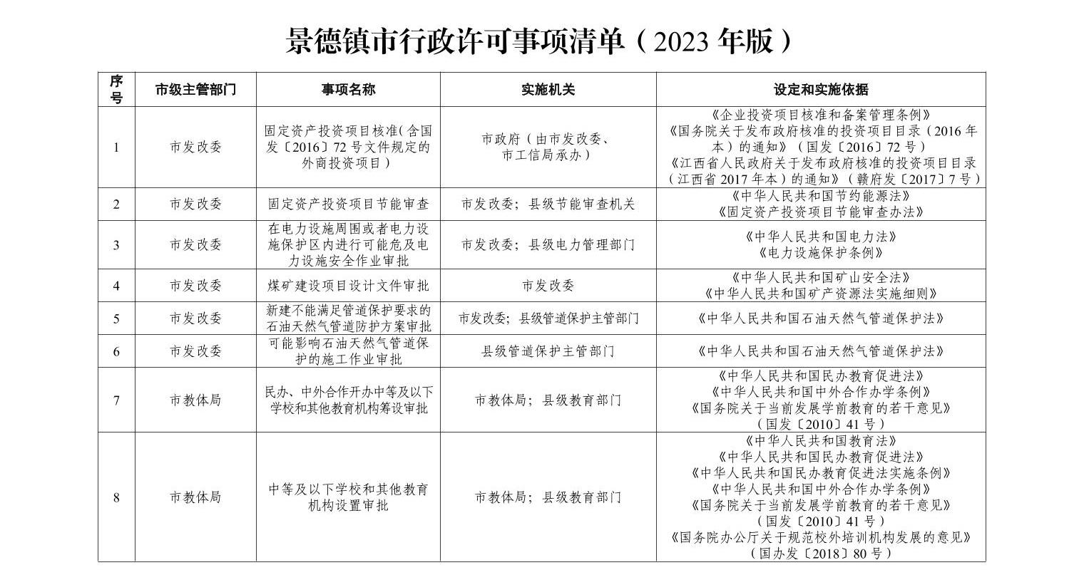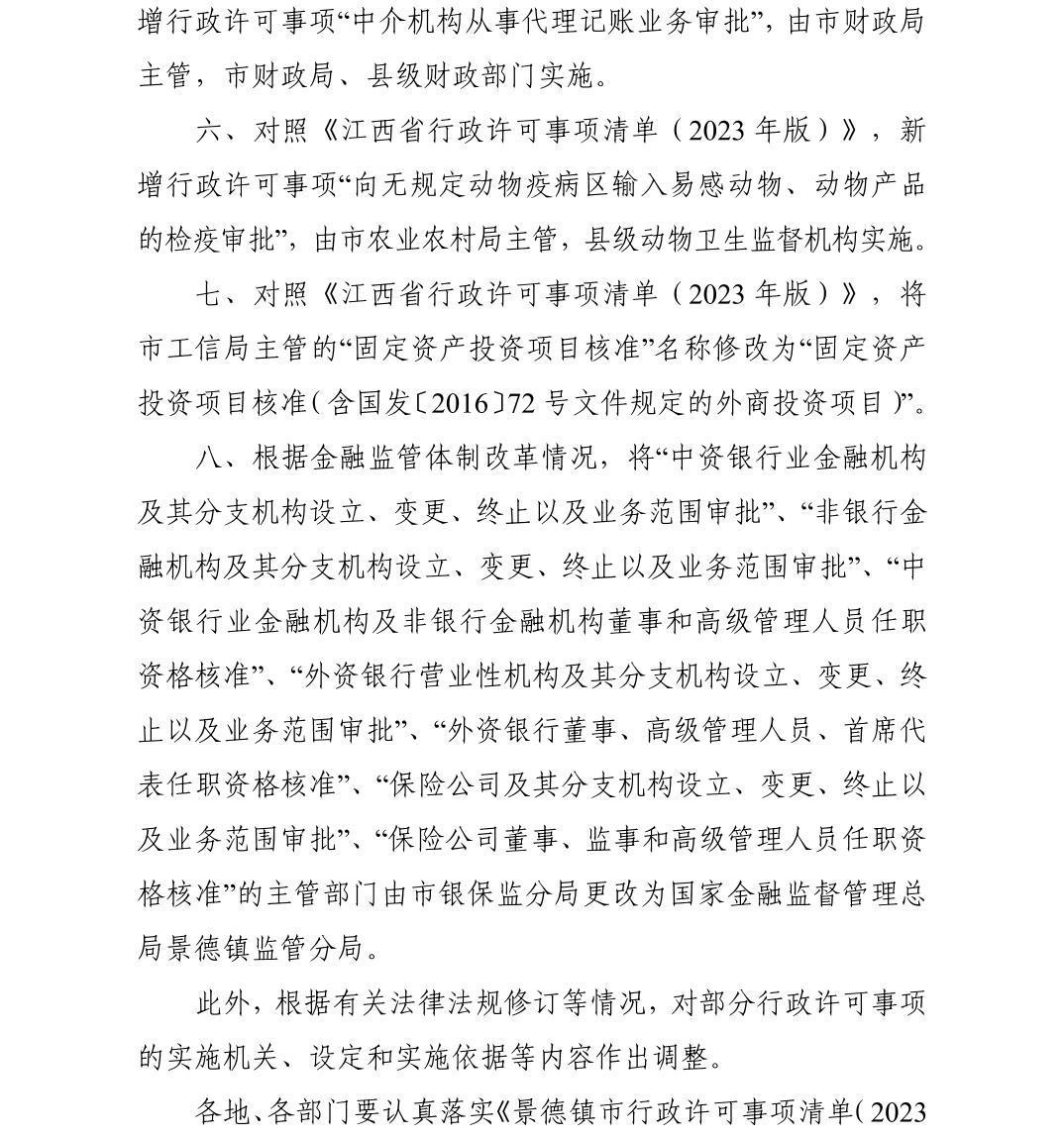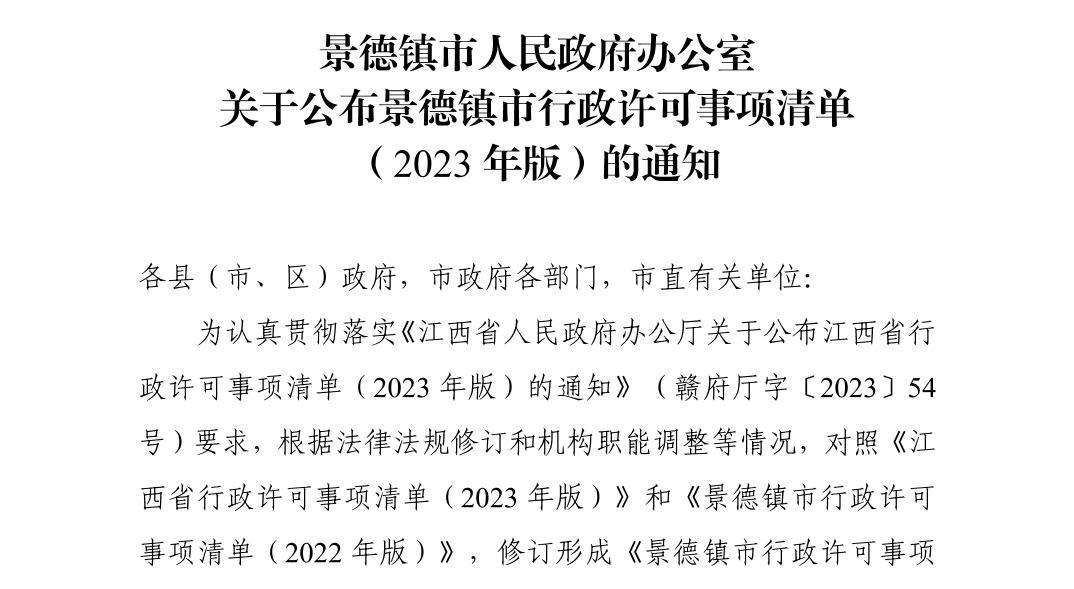 景德镇市人民政府办公室关于公布景德镇市行政许可事项清单(2023年版)的通知