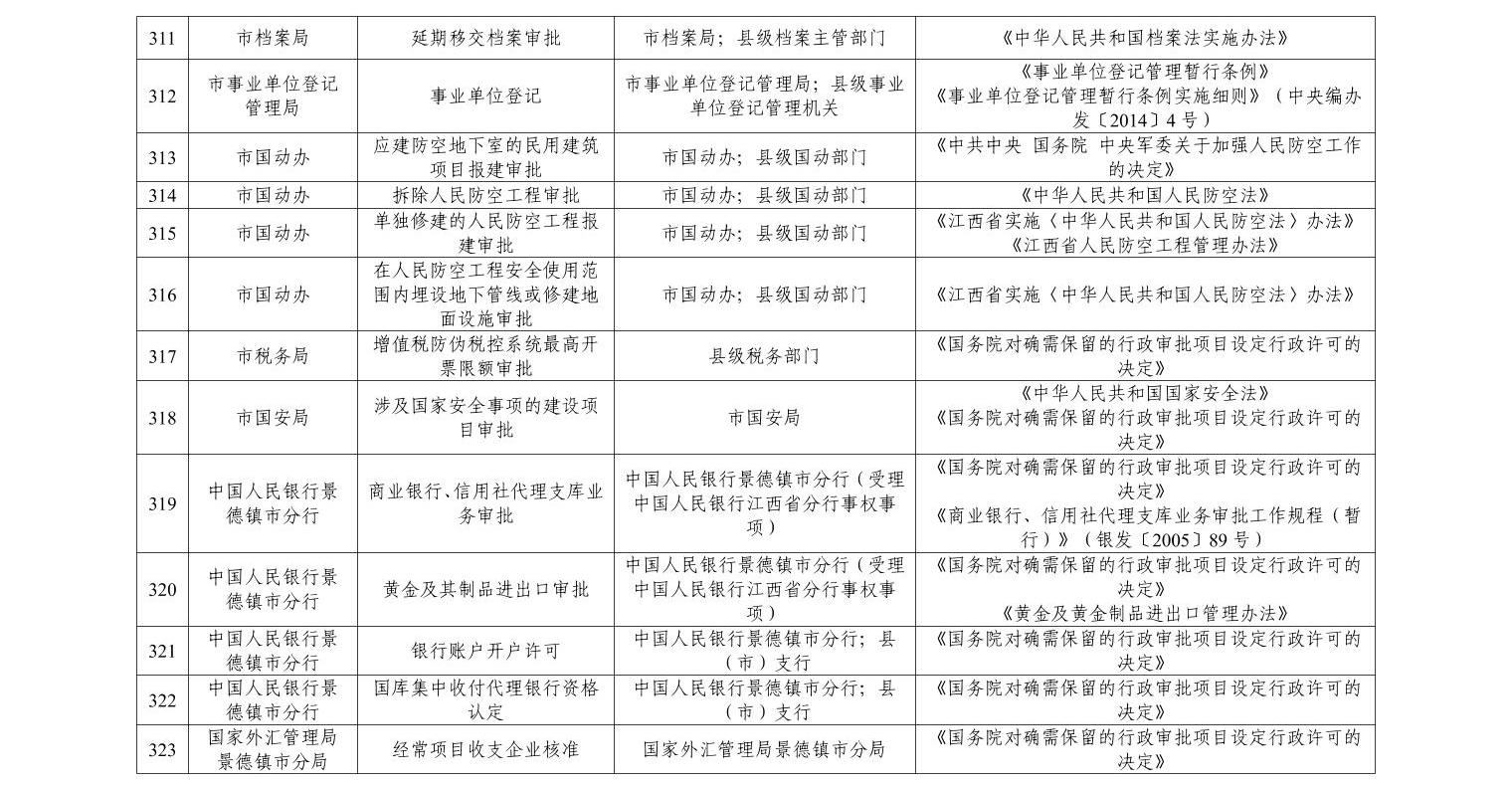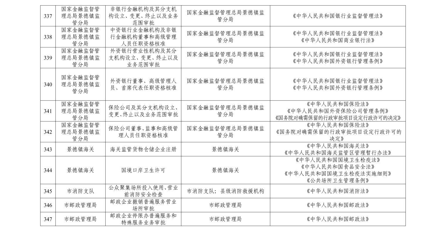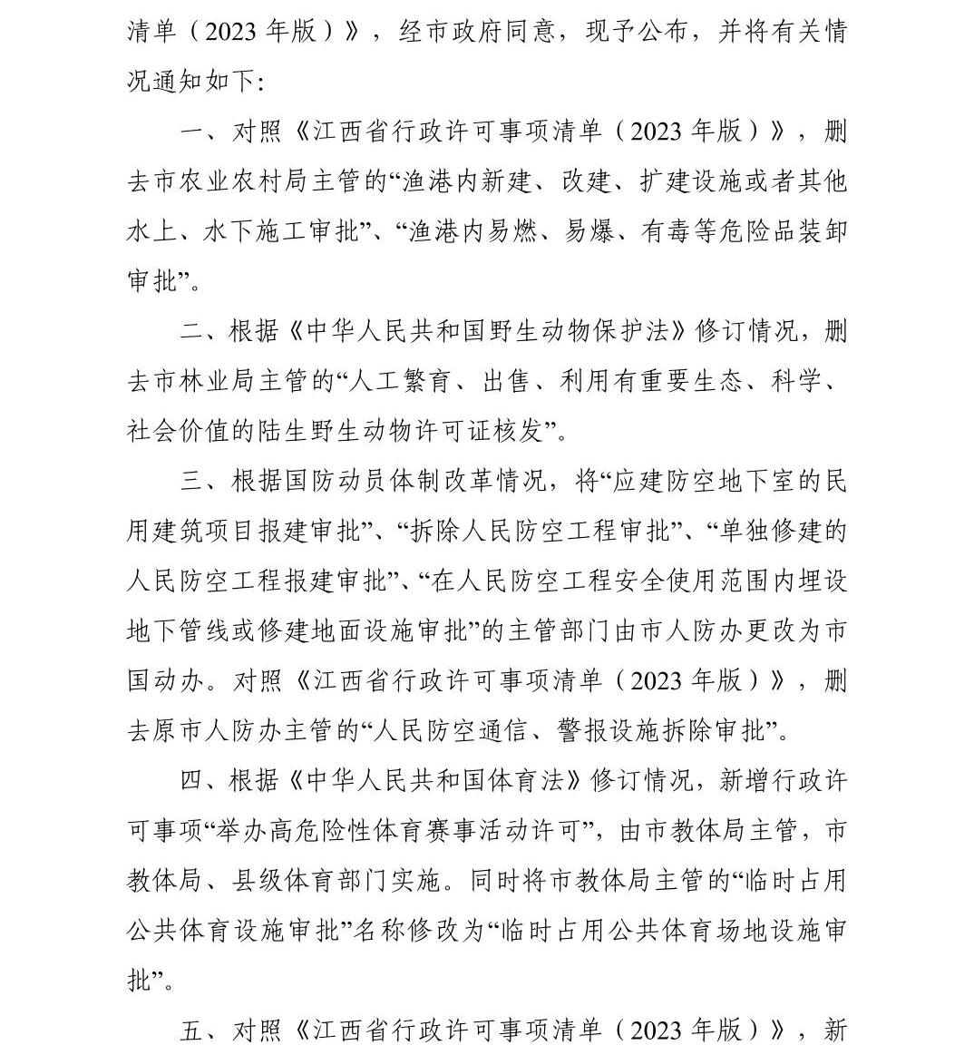 景德镇市人民政府办公室关于公布景德镇市行政许可事项清单(2023年版)的通知