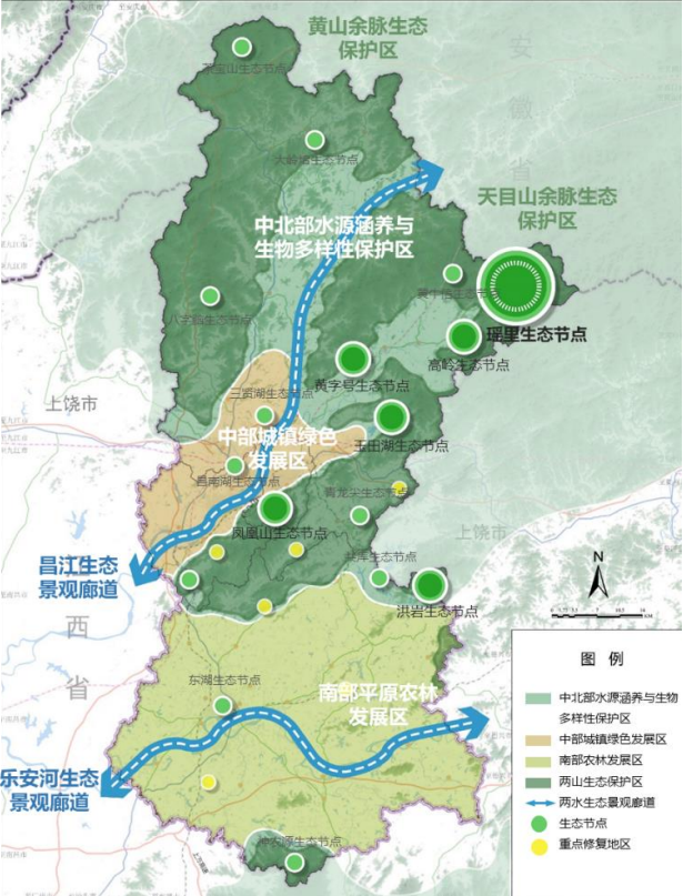 (一)生态保护修复工程 1.推动浮梁县山水林田湖草生态修复重大工程建设,以森林生态系统修复、昌江源头流域水生态系统修复、矿区生态修复、基本农田土壤修复、小流域水土流失治理为重点的重大生态修复工程,打造瓷都“昌江源头地区”山水林田湖草综合治理样板; 2.推动景德镇市昌江区西河水环境综合治理、昌南新区西河生态综合治理、景德镇市南河水环境综合治理、景德镇饮用水源地(玉田湖)生态修复及保护工程、浮梁县饮用水源地规范化建设工程、乐平大口坞水库生态环境修复工程、乐平安殷河流域水污染综合整治、乐平市锦溪河水环境综合治理、乐平采煤沉陷区环境综合整治、乐安河流域水环境综合整治、高标准农田重大工程、昌南新区雨污分流基础设施建设、二亭村10万吨污水处理厂等项目建设,打造赣东北山水林田湖草综合治理样板。 (二)污染治理工程 1.推进焦化行业超低排放改造,实施医药化工等重点行业挥发性有机物治理改造; 2.加强“四尘三烟三气”治理,推进细颗粒物(PM2.5)与臭氧(O3)协同治理,空气质量稳定达到国家二级标准; 3.加快景德镇市垃圾焚烧设施改造升级; 4.在乐平布局危险废物集中处理中心; 5.实施清源医疗废物处理中心扩能升级改造。 (三)林田保护工程 1.国家级和省级公益林保有量达到188万亩;自然保护地面积达到119.56万亩,天保林面积达到135.42万亩。健全1个国家级林木资源保存库、2个省级林木良种基地、4个省级林木资源保存库; 2.林业有害生物成灾率控制在8‰以下。森林火灾受害率控制在0.5‰以下; 3.推进枫树山林场森林“四化”项目暨珍贵树种培育项目、长江防护林建设项目、国家木材战略储备林建设基地项目以及黄山周边地区(景德镇市)松材线虫病防治工程建设; 4.推进洪源片区土地综合整治项目(景德镇城市田园项目)。 |