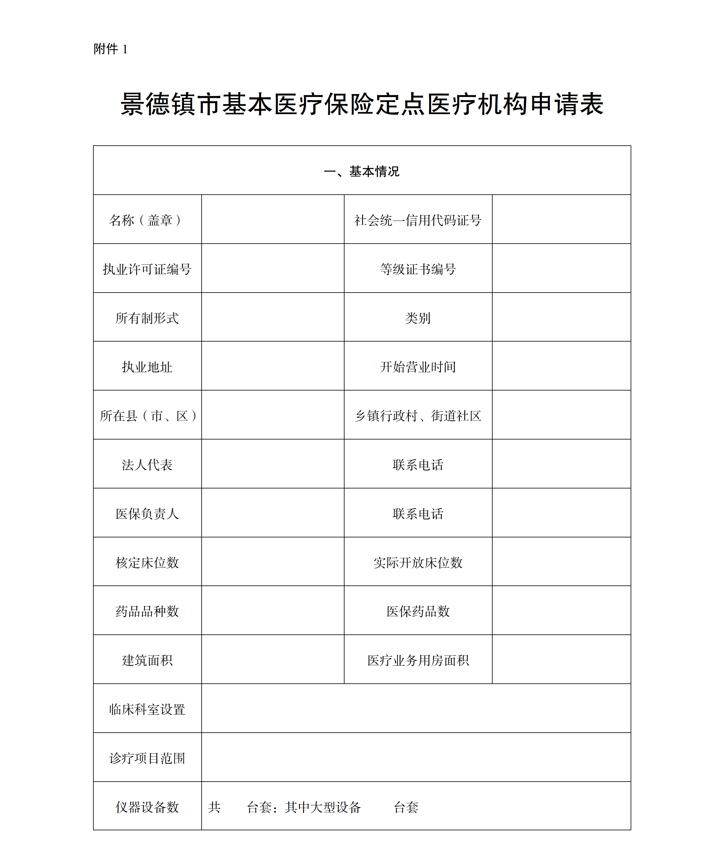 附件:1.景德镇市基本医疗保险定点医疗机构申请表