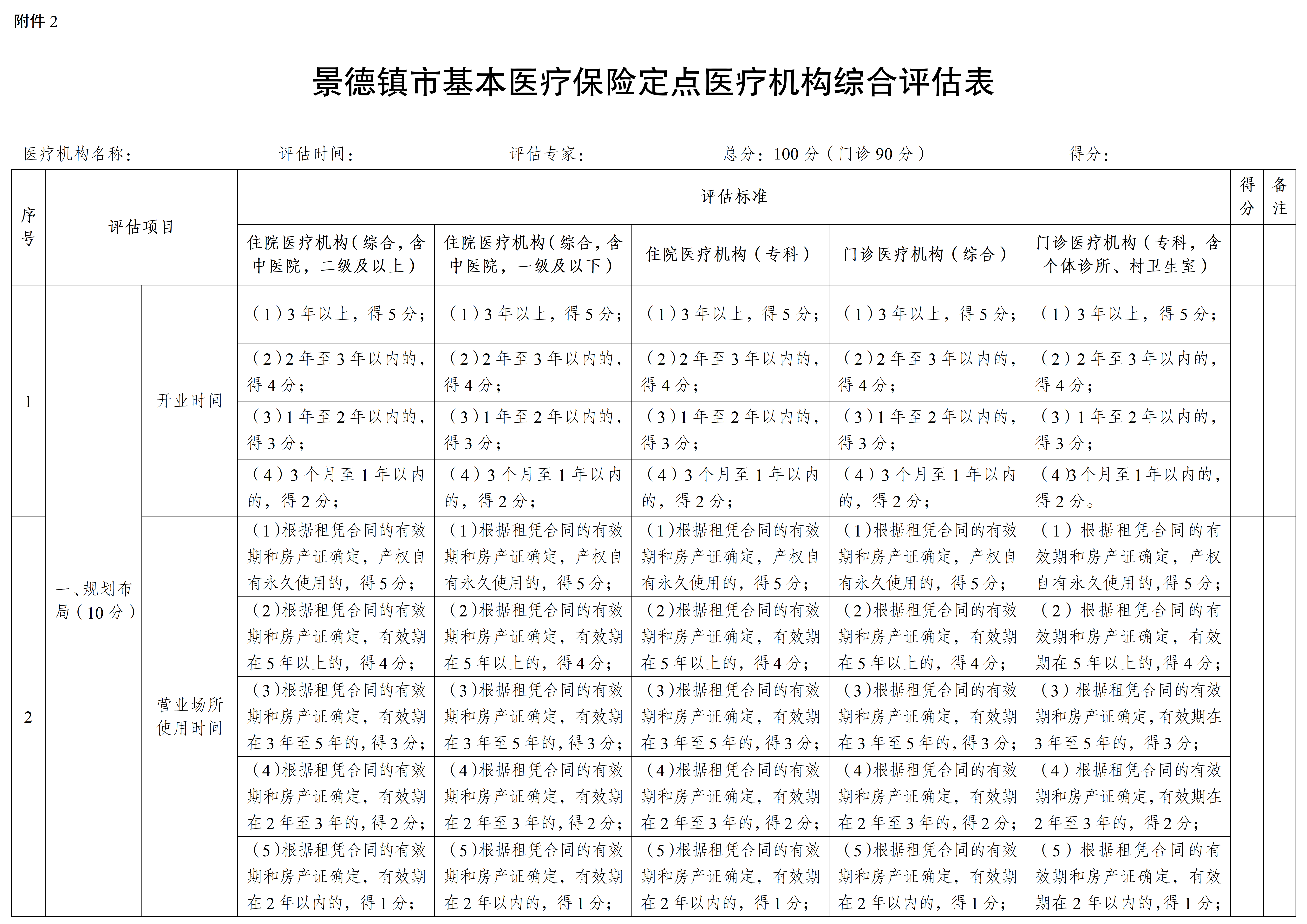 2.景德镇市基本医疗保险定点医疗机构综合评估表
