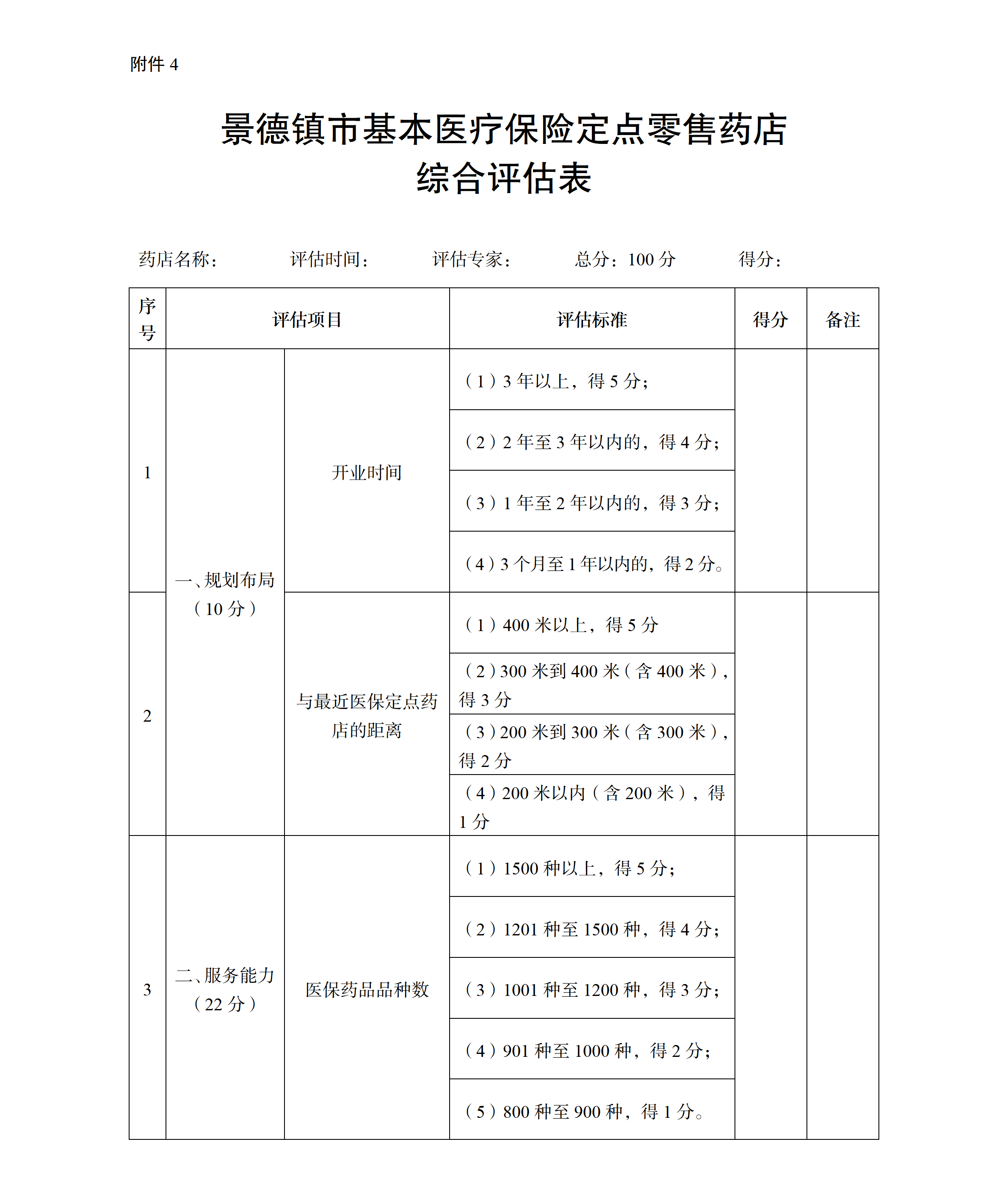 4.景德镇市基本医疗保险定点零售药店综合评估表