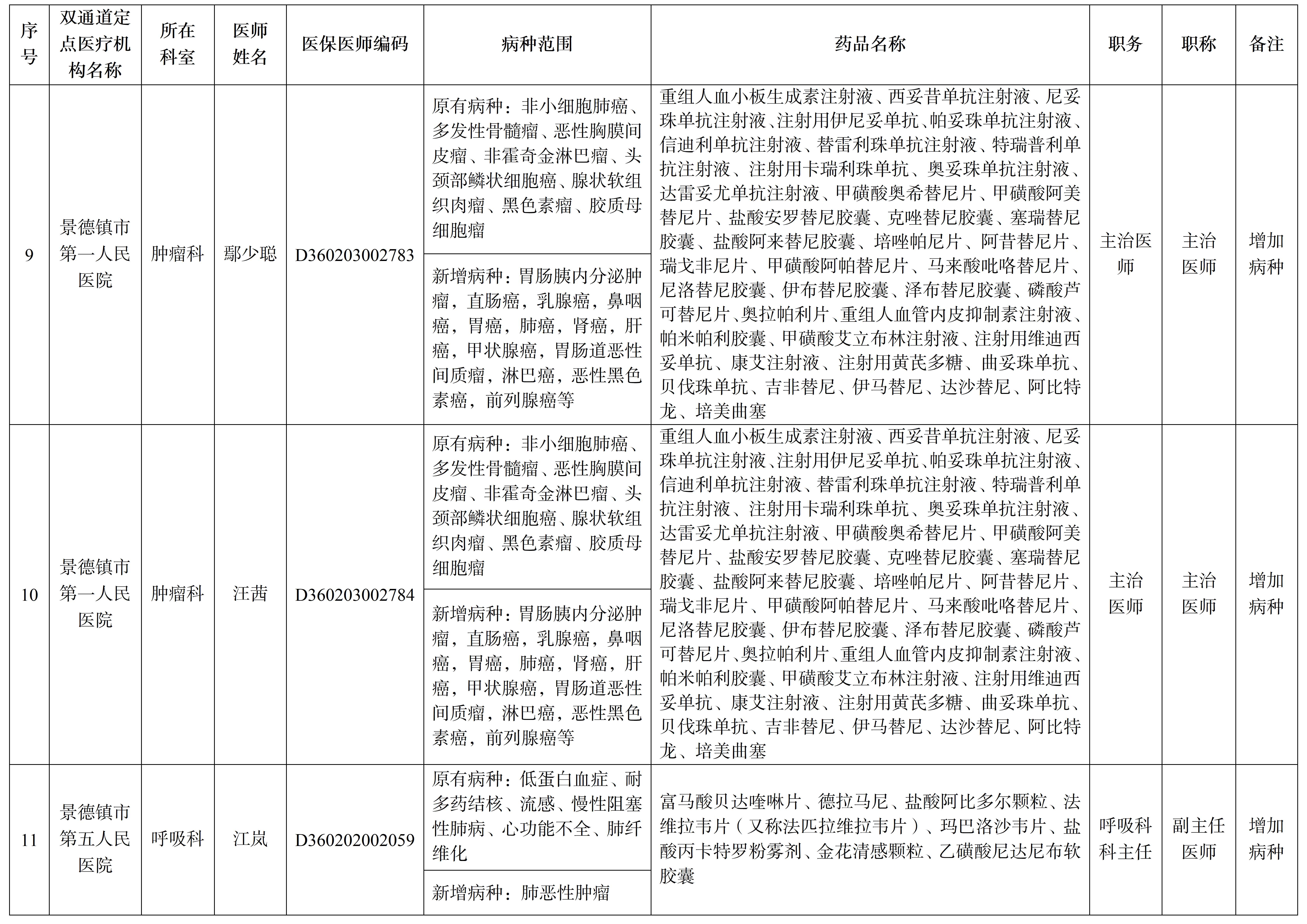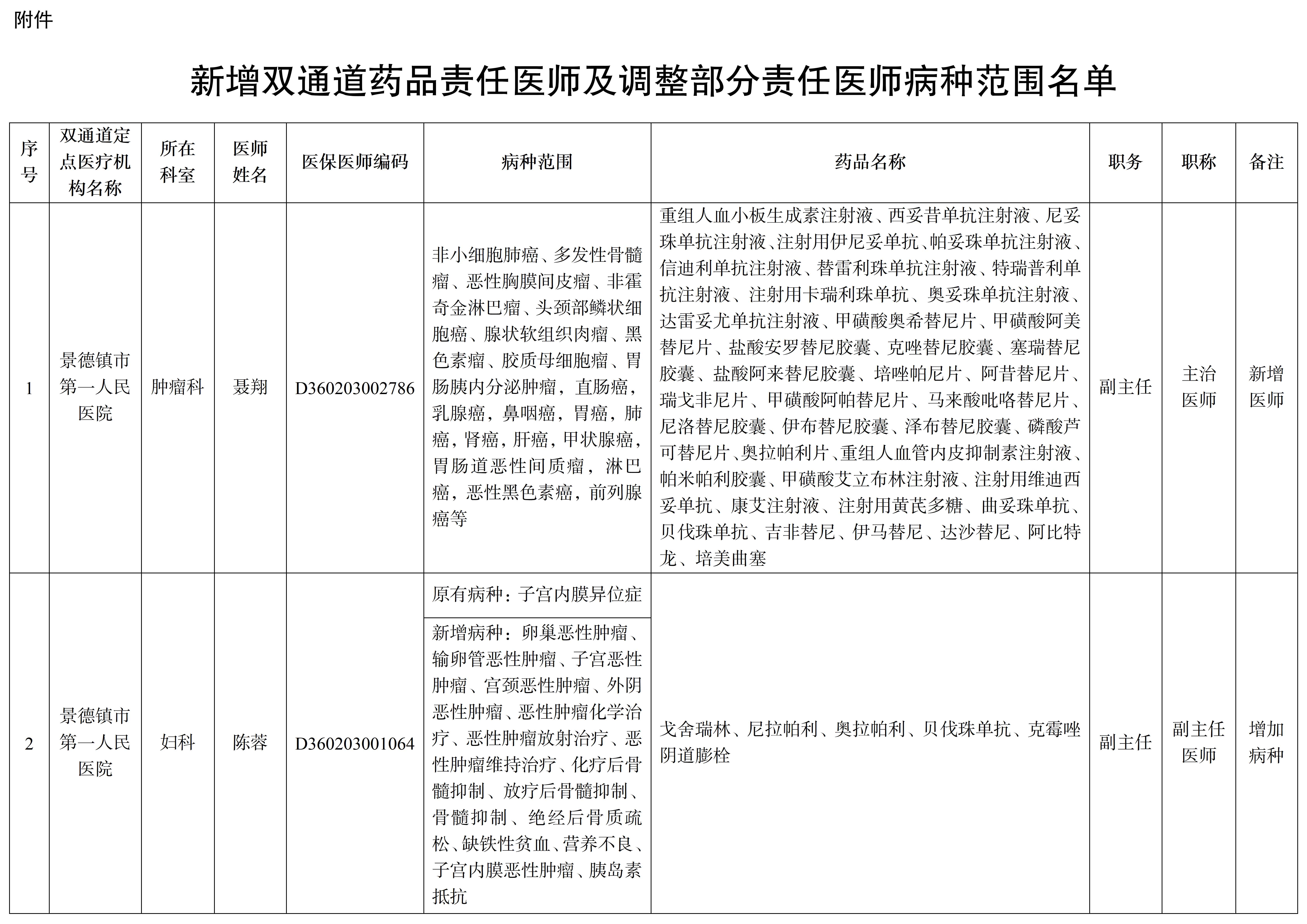 附件:新增双通道药品责任医师及调整部分责任医师病种范围名单