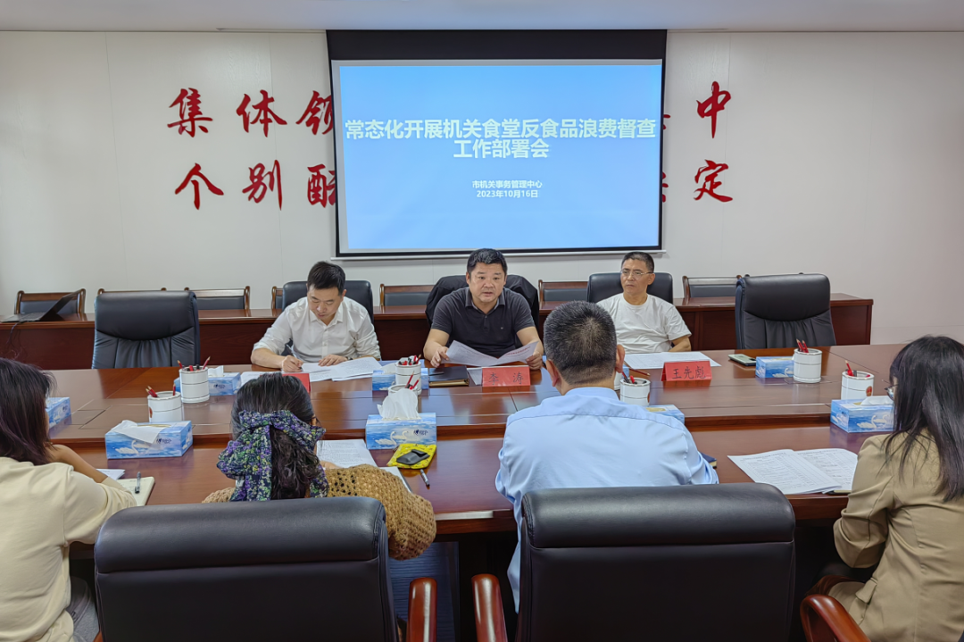 10月16日是第43个世界粮食日,主题为“践行大食物观,保障粮食安全”。为深入贯彻落实习近平总书记关于制止餐饮浪费行为的重要指示精神,进一步推动第二批主题教育检视整改走深走实,推动公共机构带头落实反食品浪费工作,当日下午,市机关事务管理中心联合市纪委市监委驻市政府办纪检监察组召开全市常态化开展机关食堂反食品浪费督查工作部署会。市机关事务管理中心副主任吴燕斌、市纪委市监委驻市政府办纪检监察组组长李涛、市纪委市监委驻市政府办纪检监察组三级调研员王先彪及督查小组成员参加会议,吴燕斌同志主持会议。