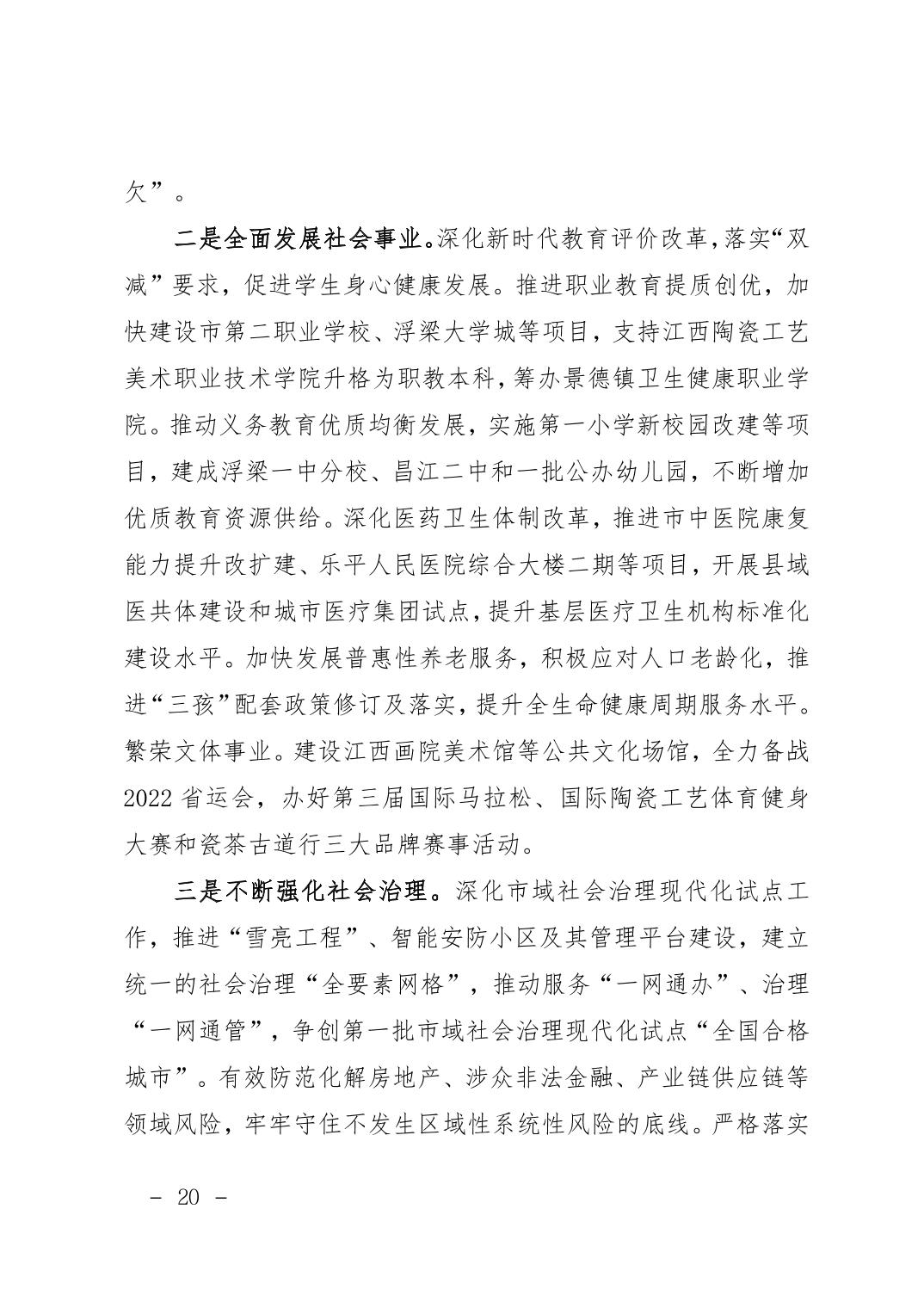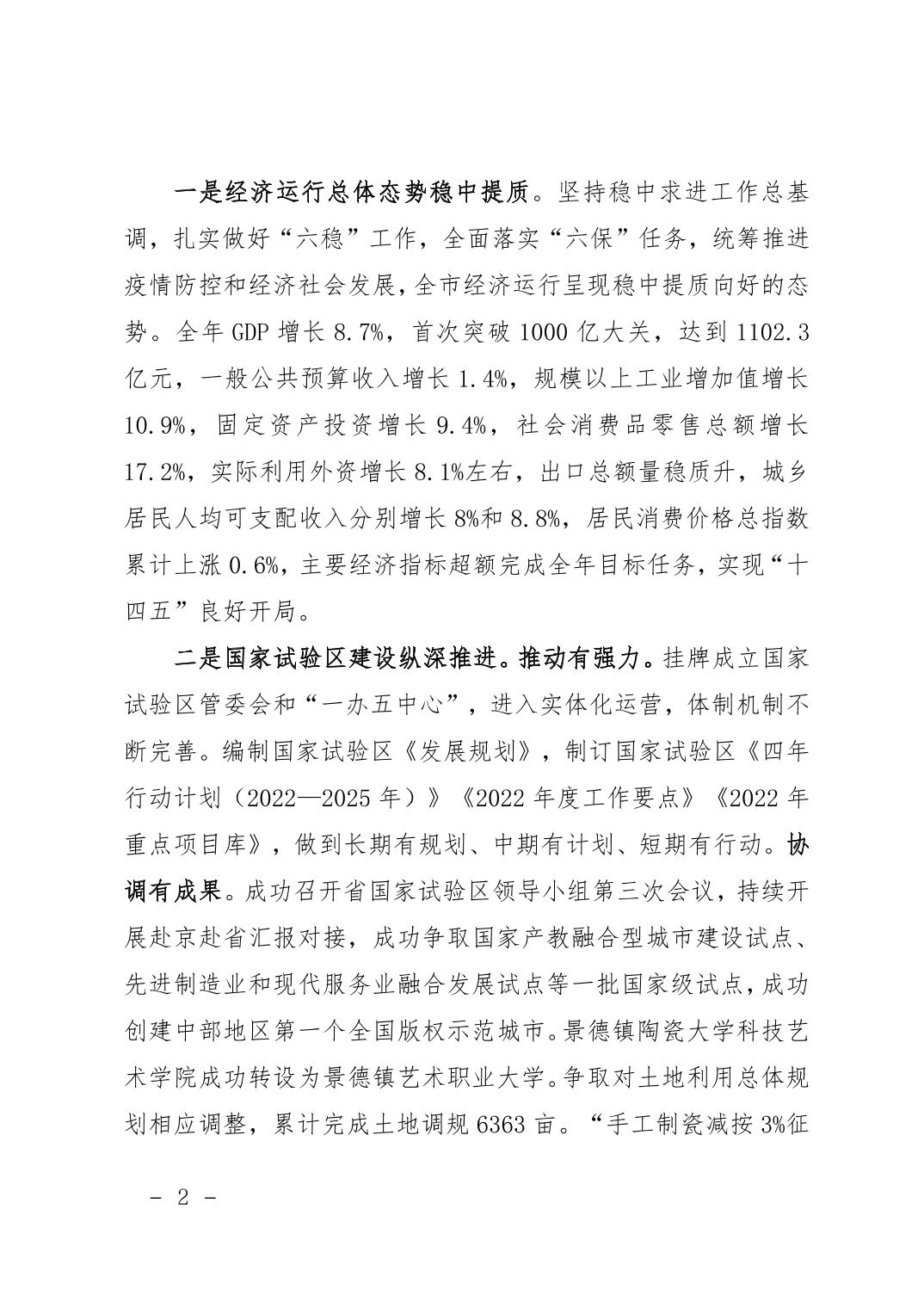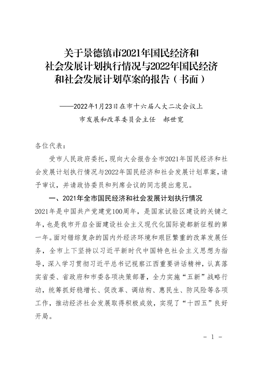 关于景德镇市2021年国民经济和社会发展计划执行情况与2022年国民经济和社会发展计划草案的报告