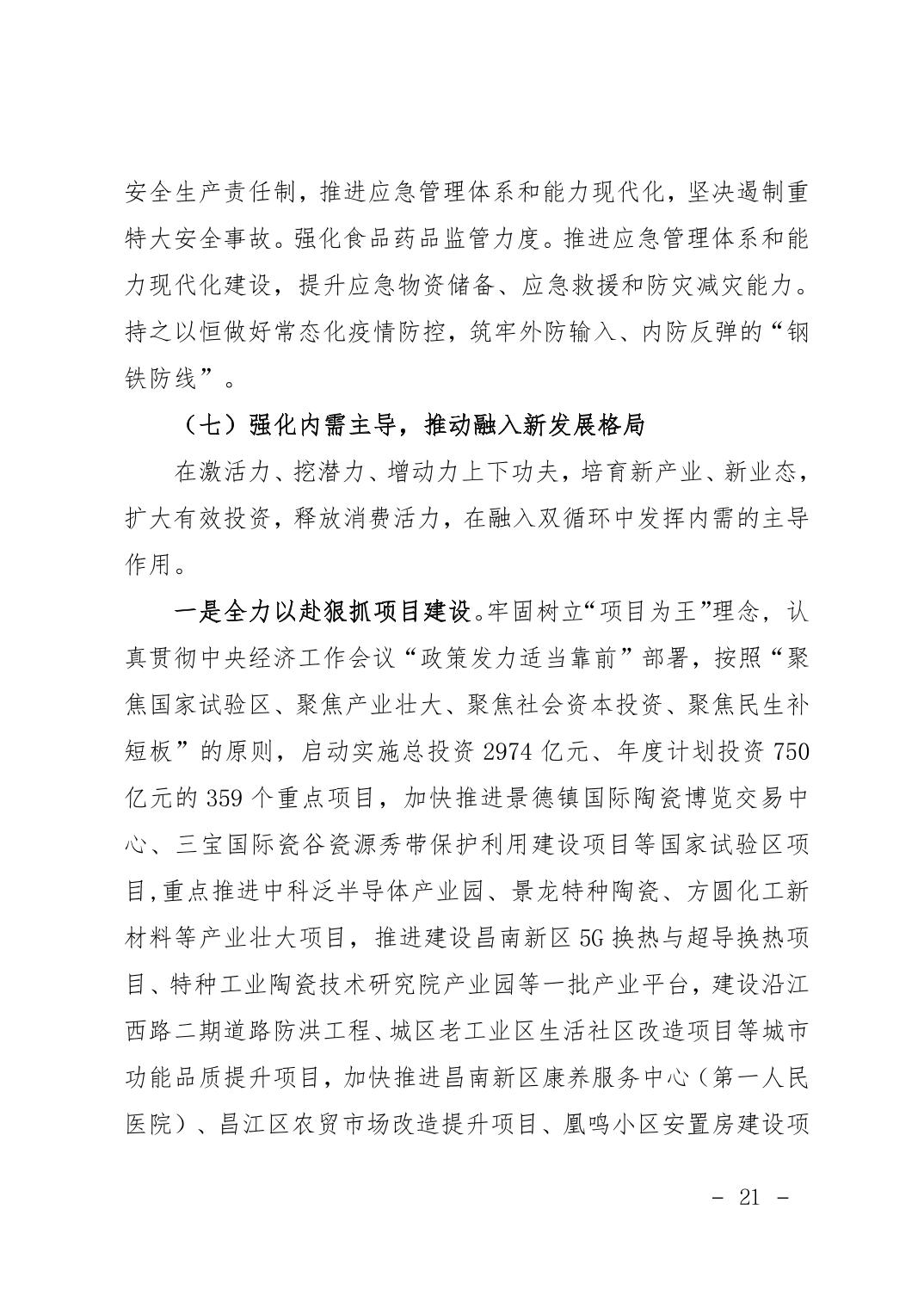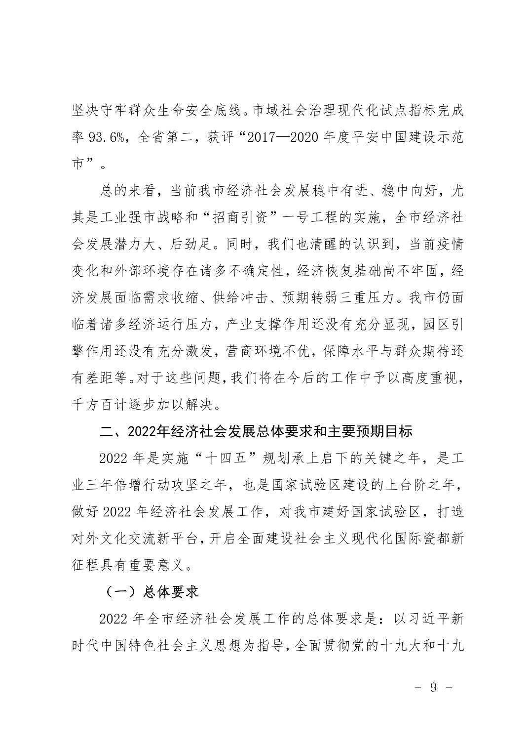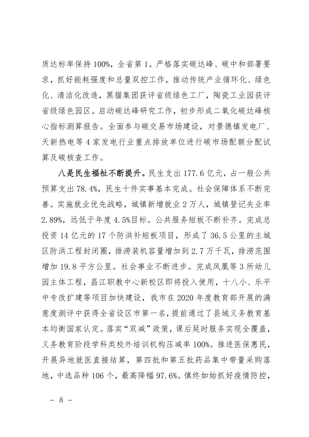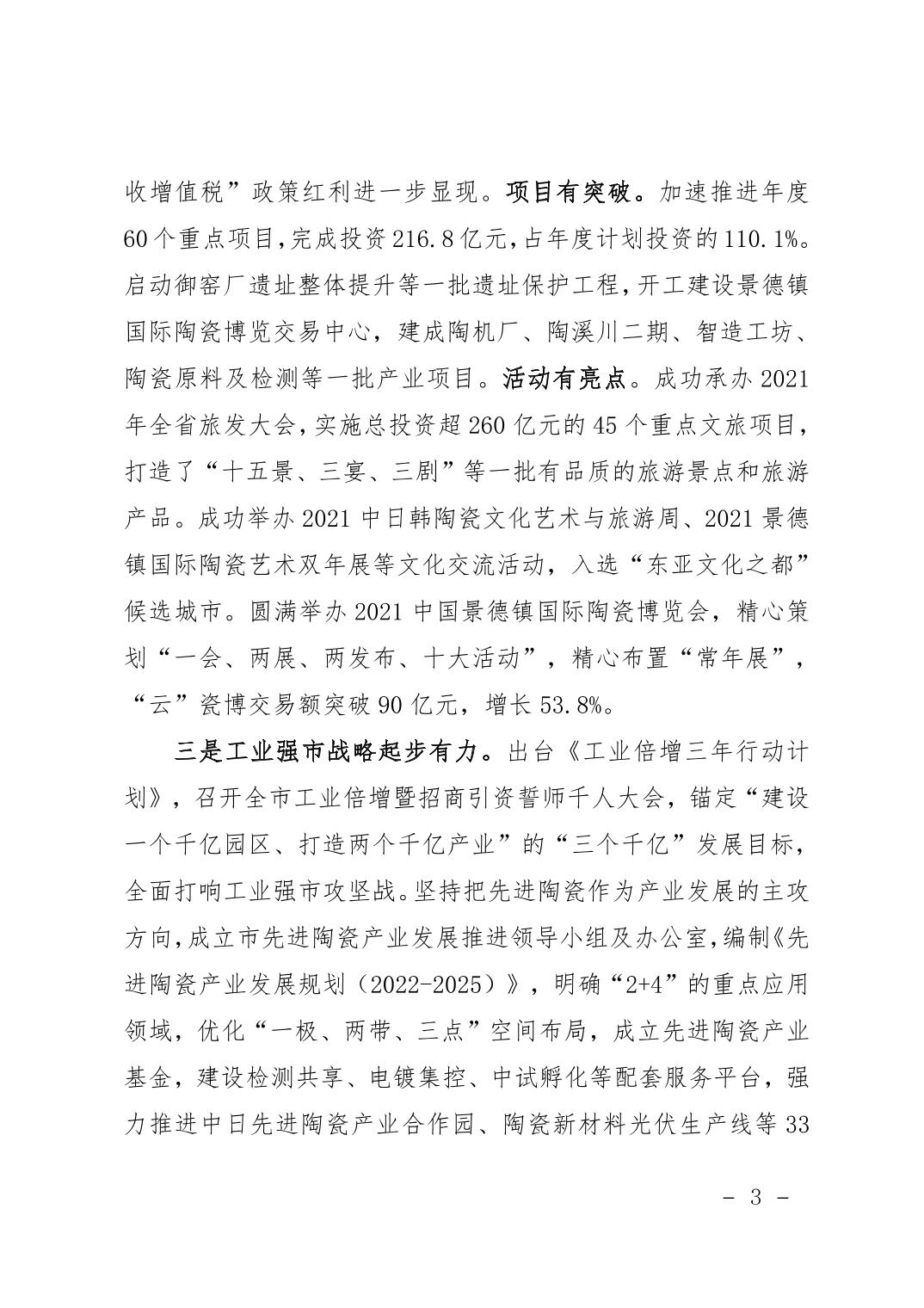 关于景德镇市2021年国民经济和社会发展计划执行情况与2022年国民经济和社会发展计划草案的报告