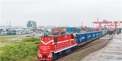 一列满载货物的海铁联运班列从铁路浙江义乌西站开出,驶向宁波舟山港。 胡肖飞摄
