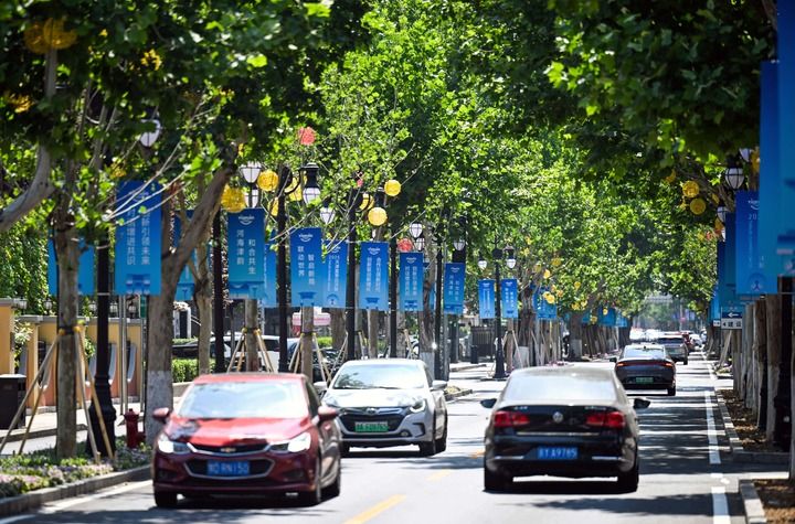天津市大光明桥道路两旁路灯上悬挂着2025夏季达沃斯论坛宣传标语(6月21日摄)。