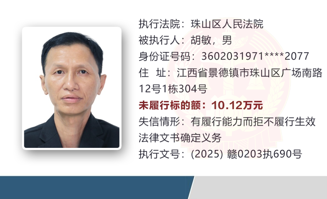 2025年景德镇第六批失信被执行人名单最新出炉!