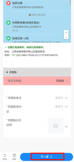 2.刷脸成功后,填写双胞胎信息,点击下一步 |