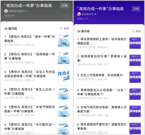线上通过政府门户网站、公众号和影响力强的本地媒体矩阵设立“高效办成一件事”专栏,大力宣传“一件事”政策解读,变“群众咨询”为“主动推送”。目前以视频操作、图表等通俗易懂的形式编制“一件事”简易版办事指南35个,浏览量达3.7万人次。线下充分运用大厅屏幕、宣传展板、制作宣传册等形式强化“一件事”办事指引,并结合“一件事”办理场景定向宣传,在医院助产机构发放“新生儿出生”一件事宣传手册和应用公共屏幕轮回播放操作视频;将“公租房一件事”宣传展板部署至各乡镇便民服务中心等,确保“高效办成一件事”政策精准直达、高效服务群众。