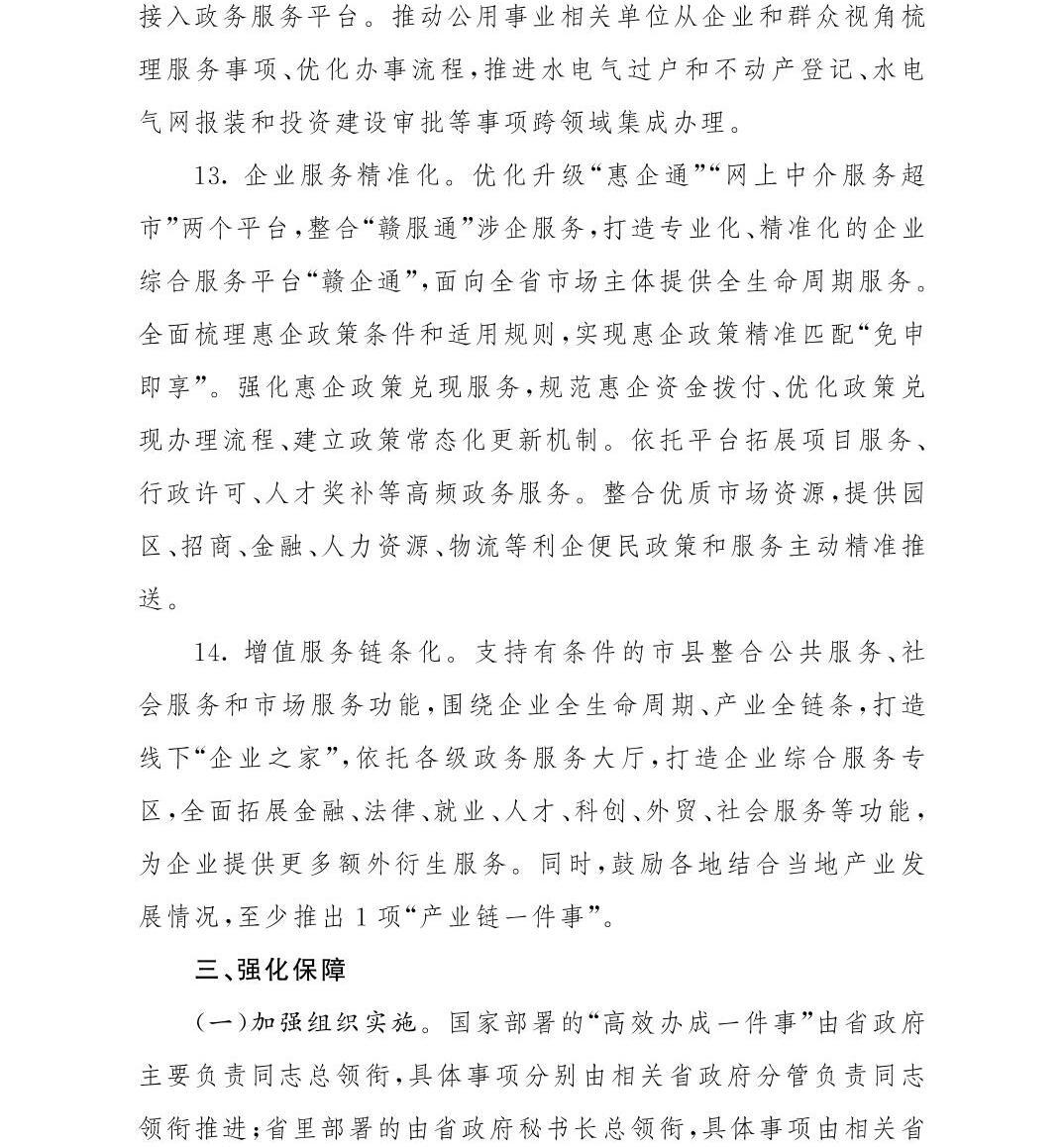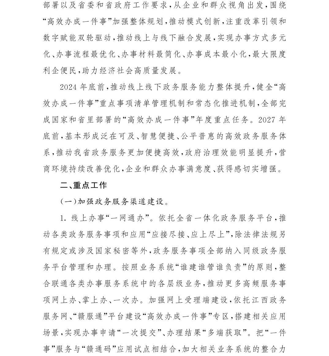 江西省人民政府关于进一步优化政务服务提升行政效能推动高效办成一件事的实施意见