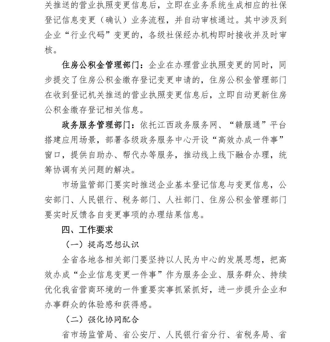 江西省高效办成“企业信息变更一件事”实施方案