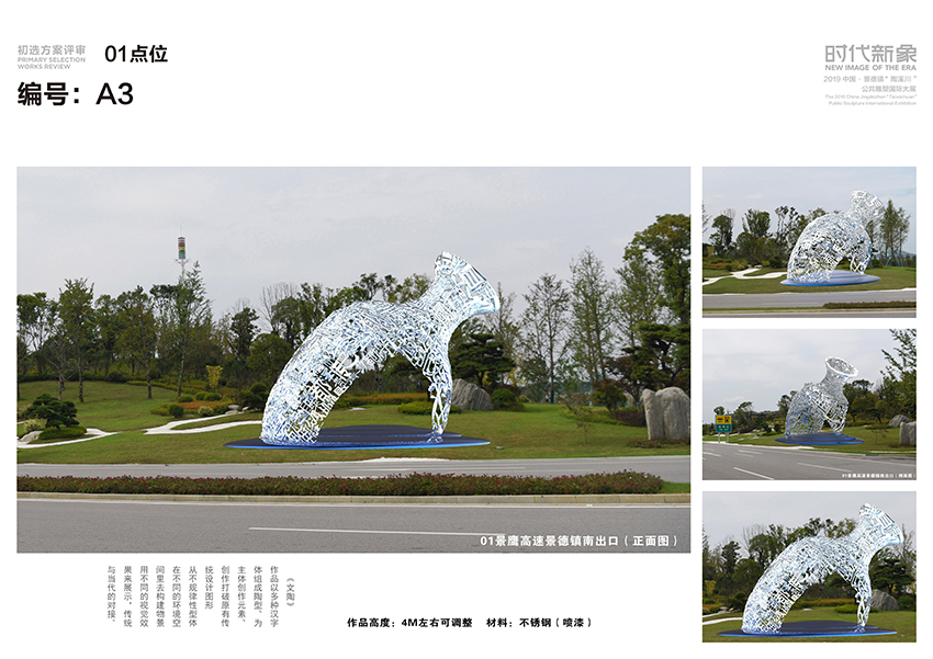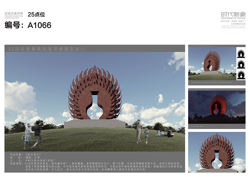 These works will be presented on “New Image of the Era”, the 2019 China Jingdezhen “Taoxichuan” Public Sculpture International Exhibition in the form of physical models after further revision and creation. The Exhibition will be held on December 20 2019 in Jingdezhen Taoxichuan Art Gallery. Whereupon the secondary selection review will be implemented for the 58 shortlisted works.