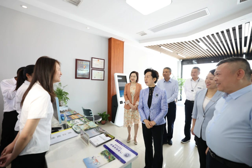在紫晶国际旅行社,胡雪梅现场察看了该旅行社资质等级,与前台客服和业务人员进行了亲切交流,听取了公司总体情况介绍,对企业品牌建设、活动开展、管理运营等方面取得的成效表示充分肯定。希望企业再接再厉,把入境游作为重点方向,让国内外更多的游客走进景德镇,领略中华优秀陶瓷文化的无穷魅力。胡雪梅还兴致勃勃地参观了紫晶国际旅行社研学基地,并现场办公。胡雪梅强调,要坚持一手抓文化传播,一手抓产业发展,抓紧与对口高校的联系,开展专业化、系统化、正规化、常态化培训,加快培育壮大导游和讲解员队伍步伐,及时出台奖补措施,树立正向激励导向,让我市文旅产业迎来欣欣向荣的春天,更好助推景德镇经济社会高质量发展。