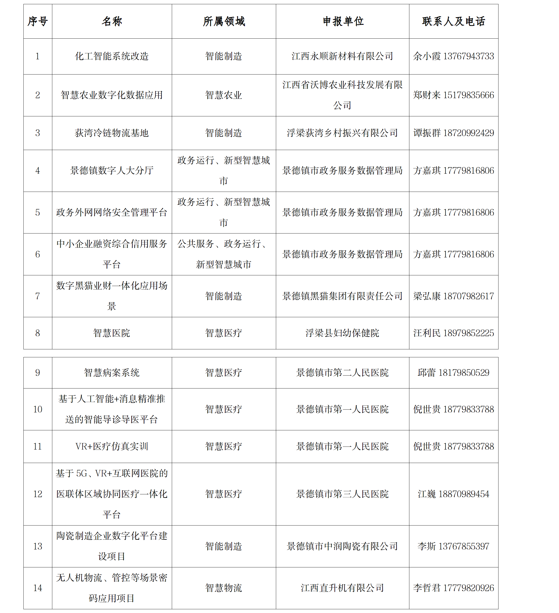 景德镇市2023年数字技术应用场景需求清单(第三批)