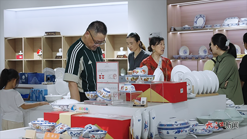 游客在景德镇中国陶瓷博物馆购买陶瓷文创。