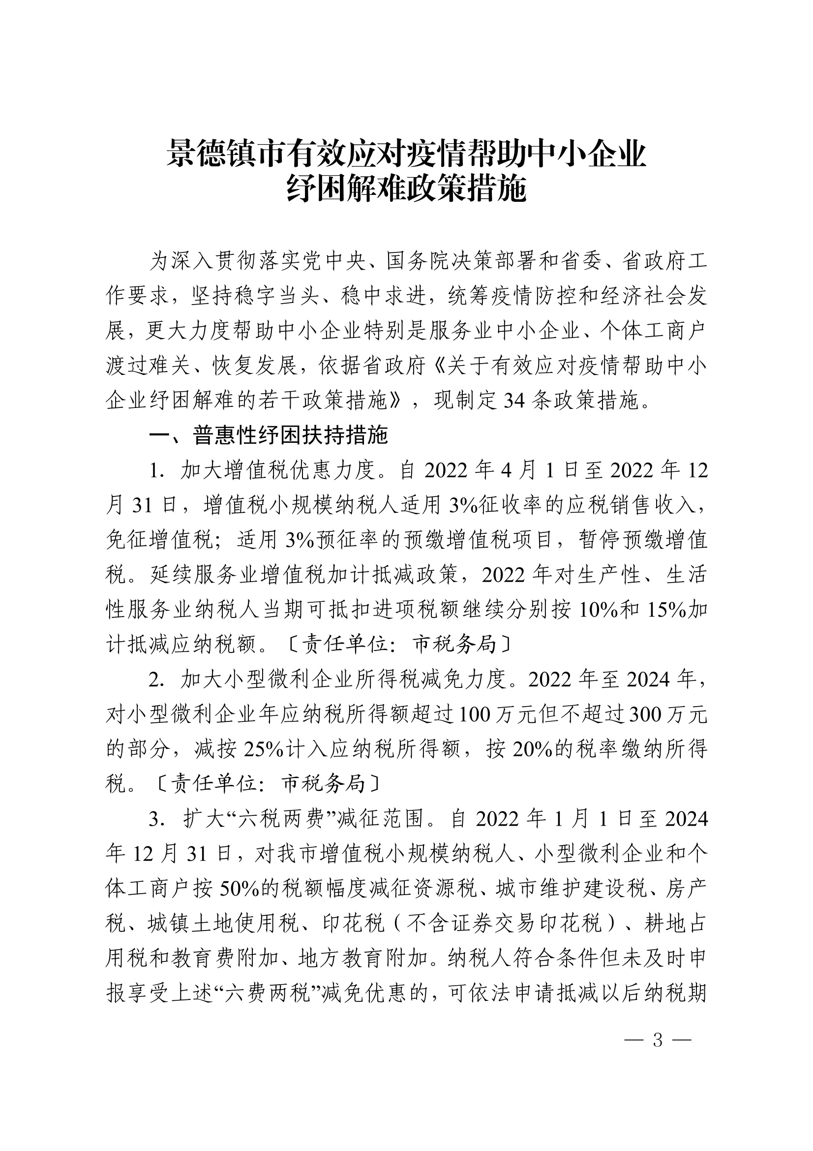 景德镇市人民政府印发关于有效应对疫情帮助中小企业纾困解难若干政策措施的通知