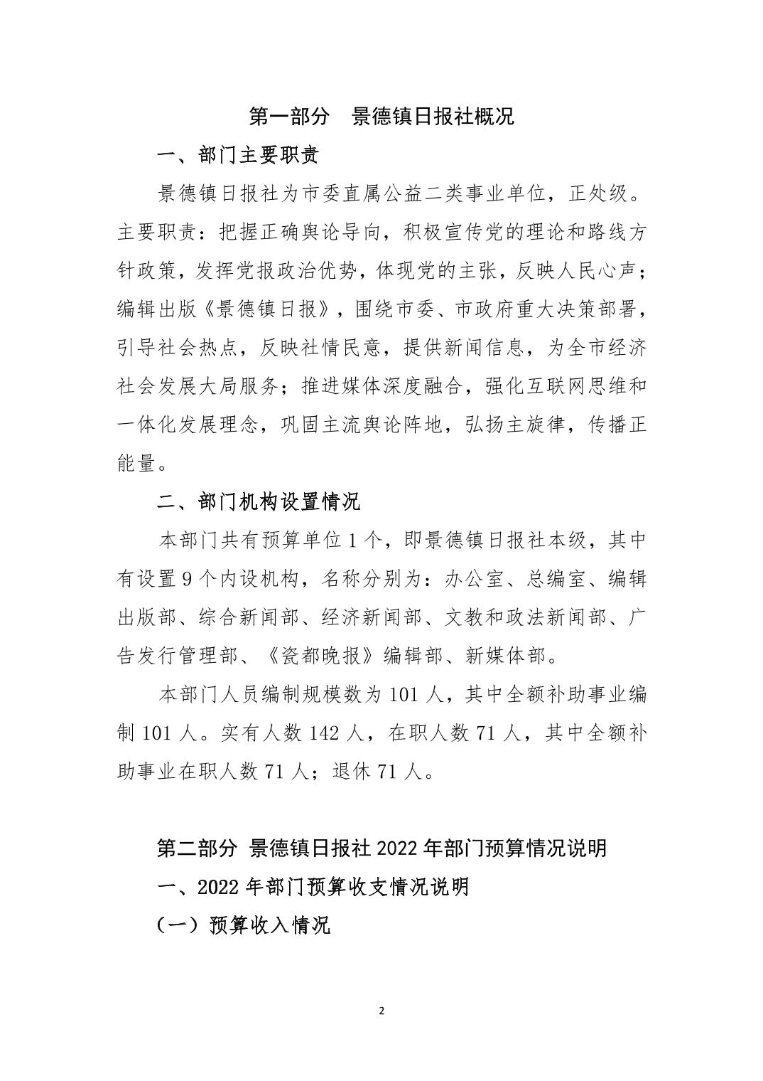 景德镇日报社2022年预算说明
